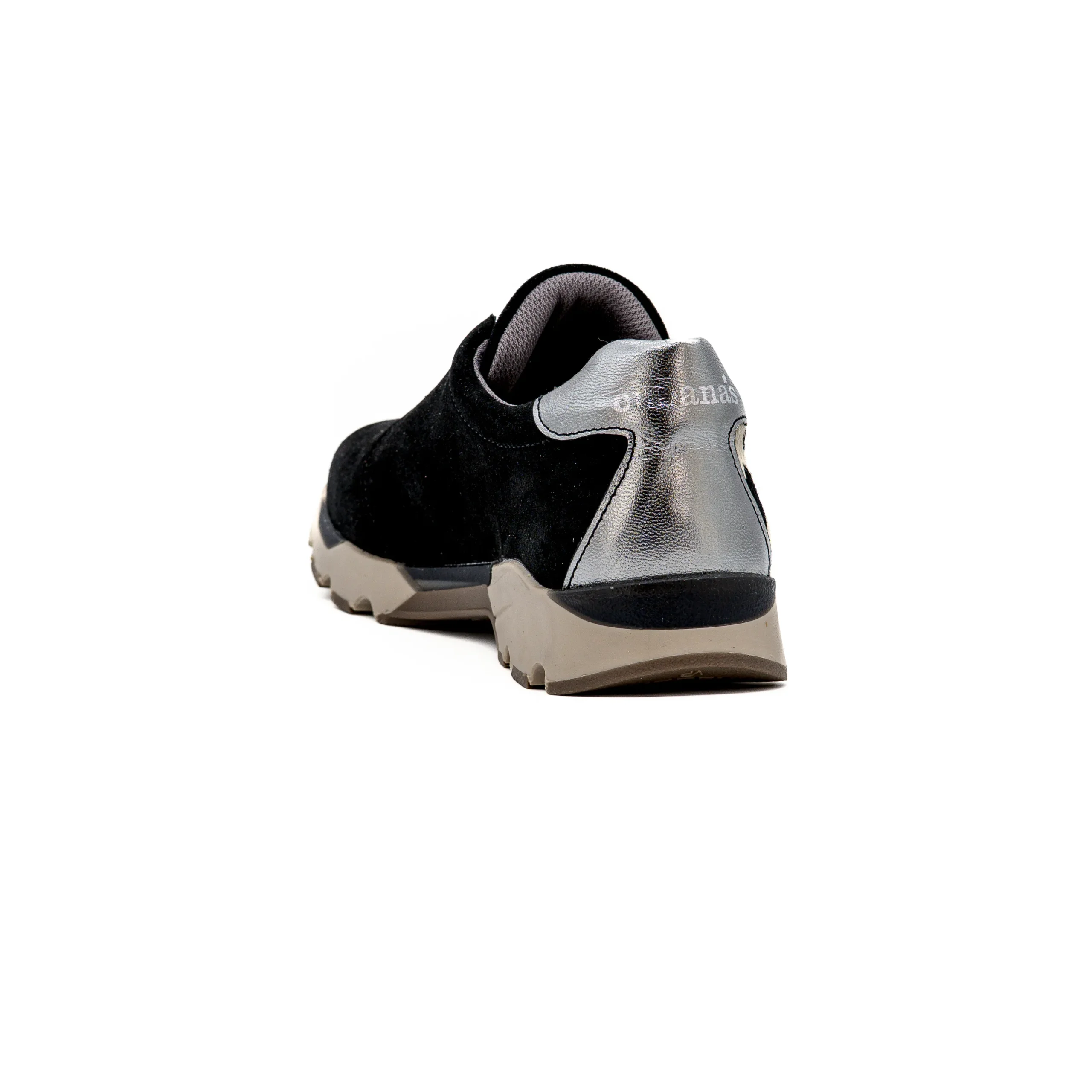 A sola desta sapatilha de mulher, tem uma inclinação pouco acentuada, que garante o apoio perfeito no pé ao caminhar e é leve, para que o conforto seja constante, durante todo o dia.