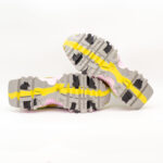 É um modelo de ténis feminino, da Exé, que além de irreverente é confortável, com a palmilha em pele e a sola com cerca de 4 cm, de cor lilás, com uma inclinação pouco acentuada que garante o apoio perfeito no pé ao caminhar. Na zona do calcanhar tem uma película holográfica que lhe dá um toque singular. O modelo 134-19, da Exé, tem um reforço da sola, em borracha, que se prolonga até à biqueira, é texturado e cria um contacto mais seguro com o solo. Tem como particularidade, um padrão em 3 tons, que não é igual em nenhum dos pares ou pés do modelo.