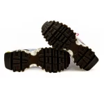 - Sola com cerca de 4 cm, de cor branca e uma mistura de cinza e detalhes em preto;