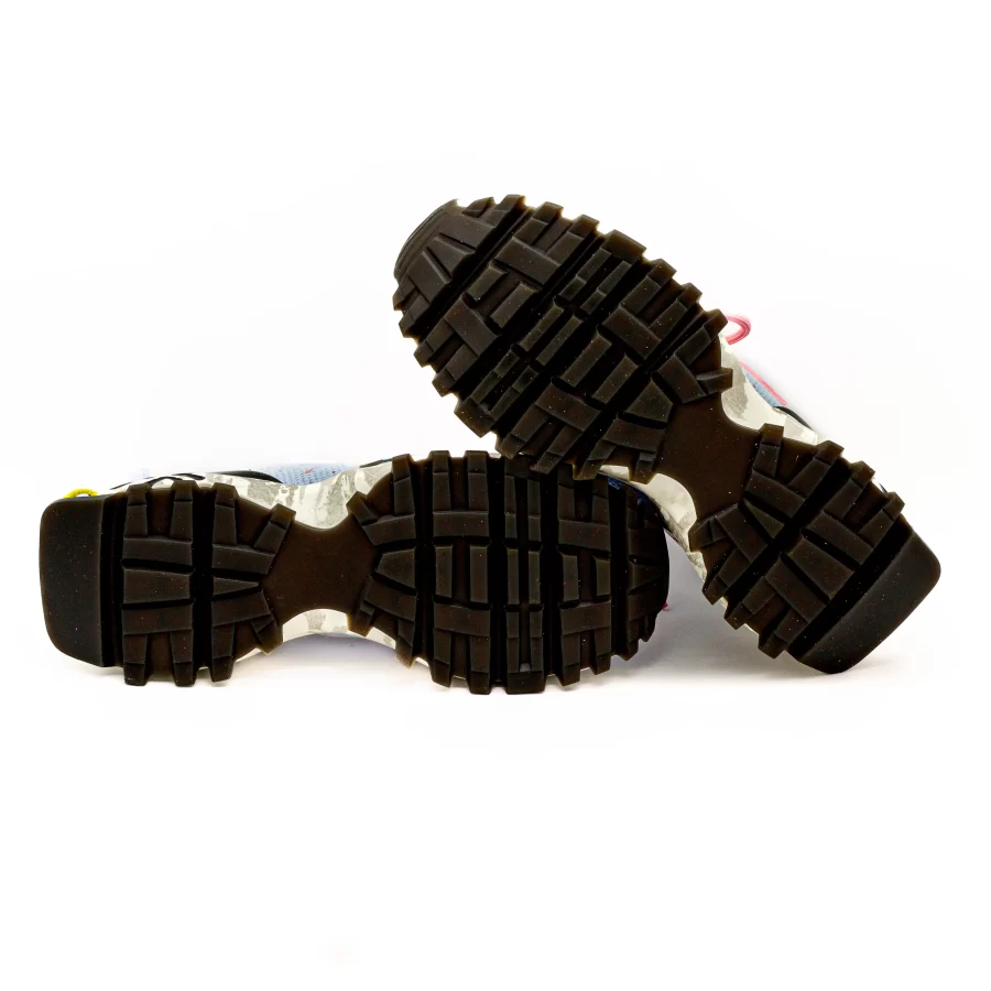 Complementada com o exterior em tecido com elasticidade, tipo meia, que se ajusta 100% ao formato do pé, com acabamentos em pele, que certificam a resistência e durabilidade da sapatilha.