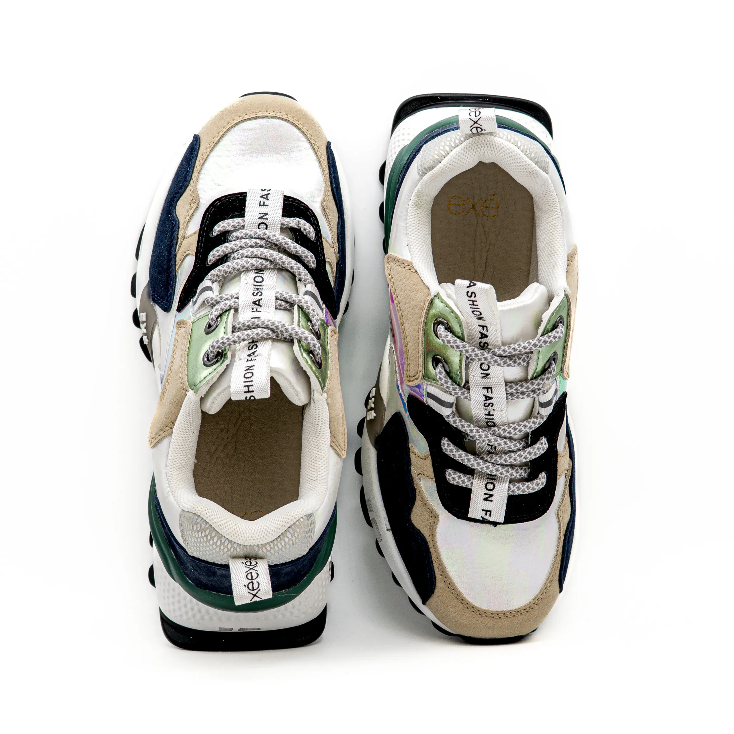 As sapatilhas 19V03-1 contam com  diferentes tipos de tecido e texturas que fazem deste modelo um ícone do universo da Exé.