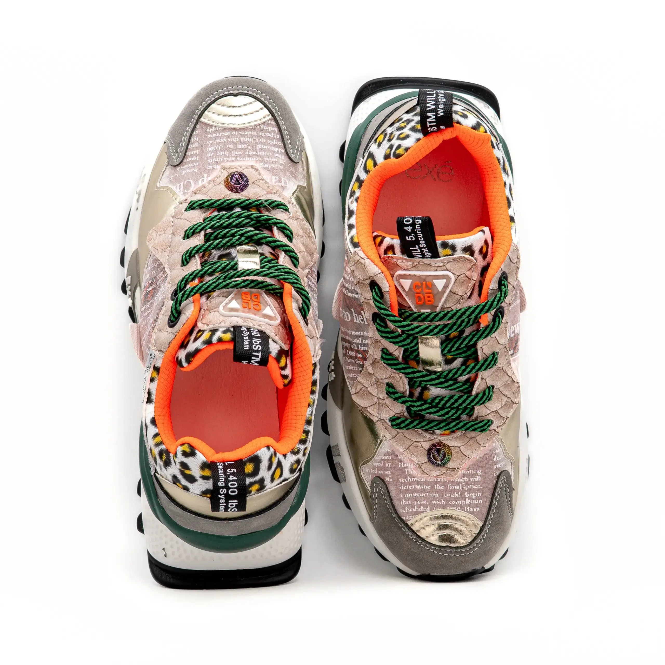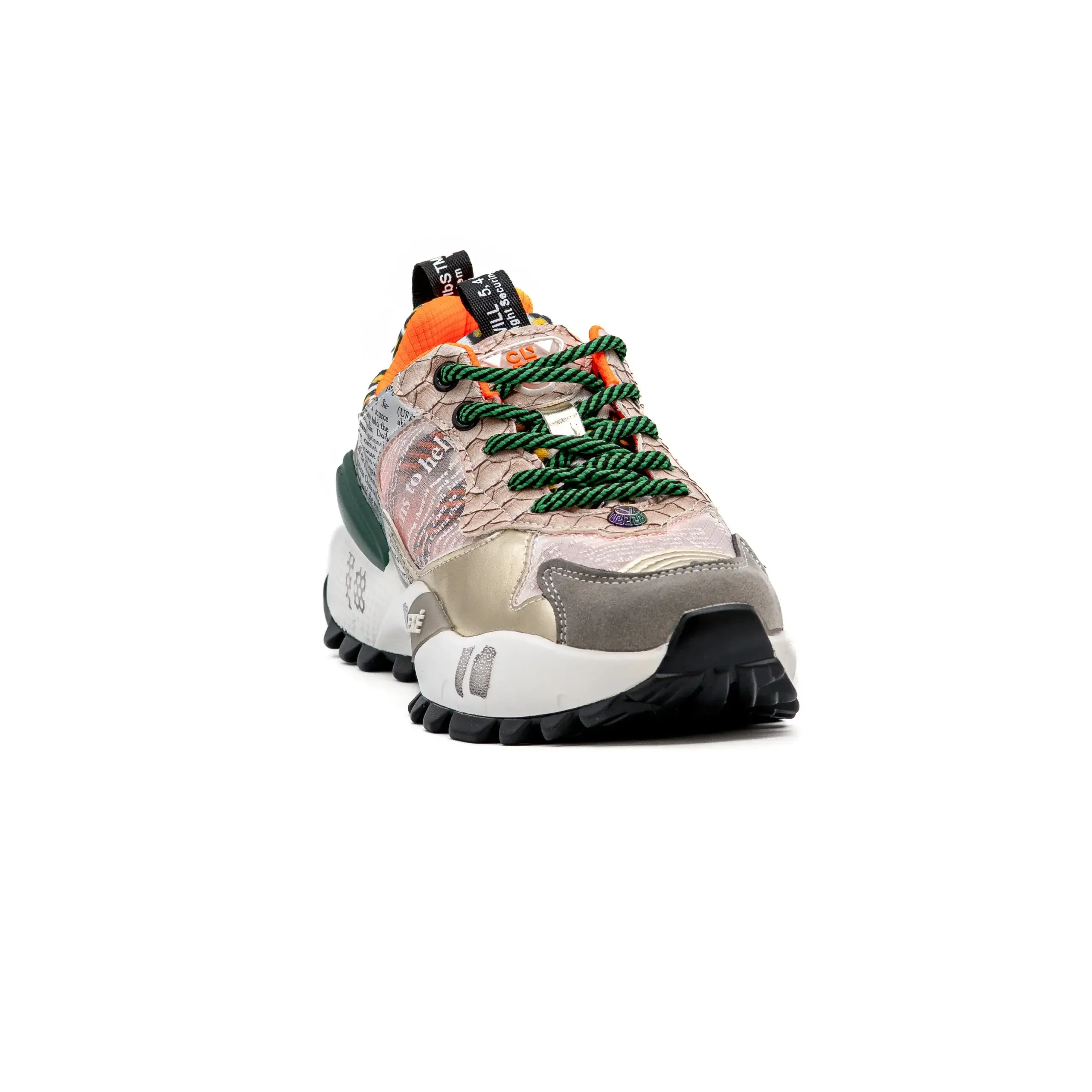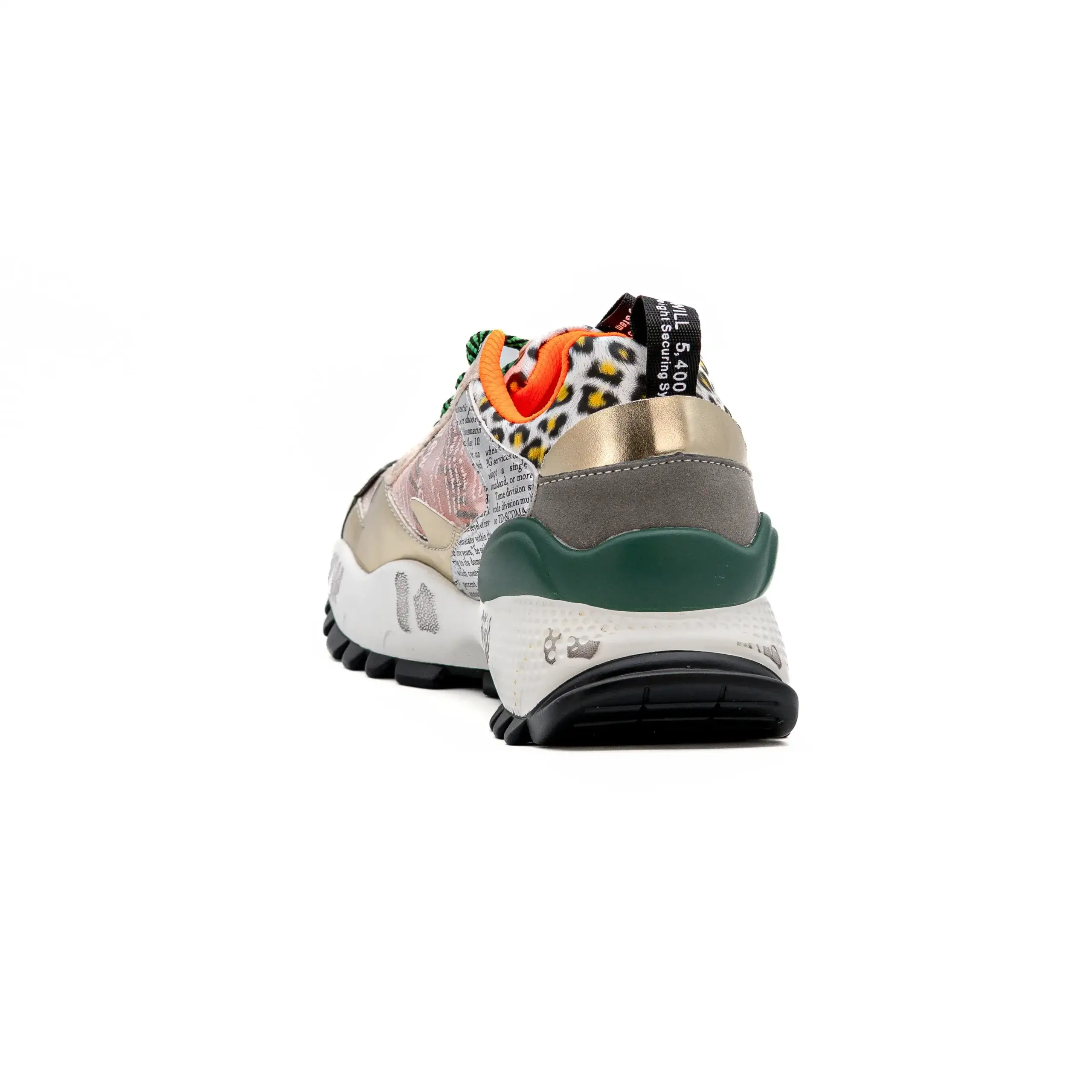 As sapatilhas 19V03-6 contam com várias aplicações e diferentes tipos de tecido e texturas que fazem deste modelo um ícone do universo da Exé.