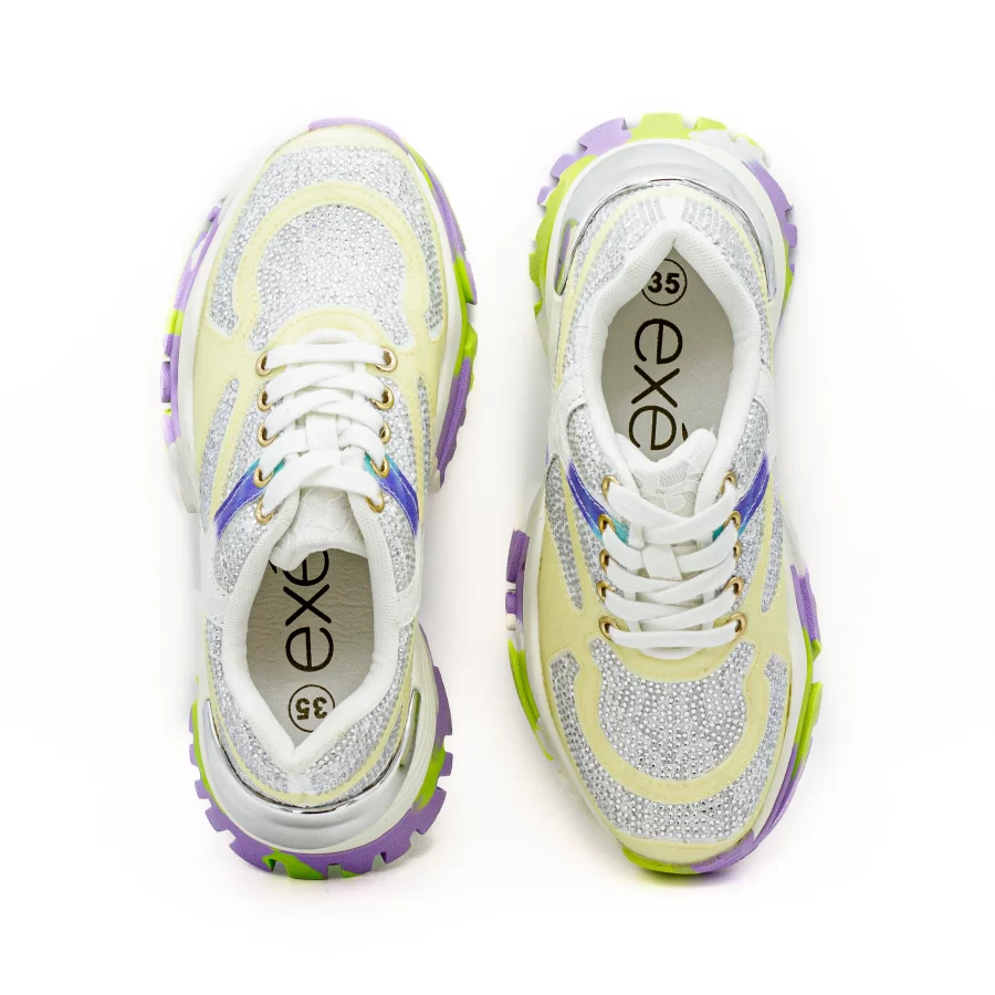 Este modelo da Exé, conjuga o brilho, que preenche grande parte do exterior, com a densidade de um solado recortado de 5 cm, tornando este par numa combinação perfeita!