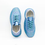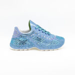 É um modelo de sapatilha feminina, da Exé, delicado, em tecido, revestido a ladrilhos brilhantes, maioritariamente na cor do modelo, que aperta com cordões no mesmo tom. Juntamente com a biqueira levemente afunilada, tornam o modelo super elegante.