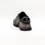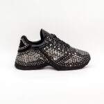Ténis de mulher com solado de 4,5 cm, em tecido, revestido a ladrilhos brilhantes.
