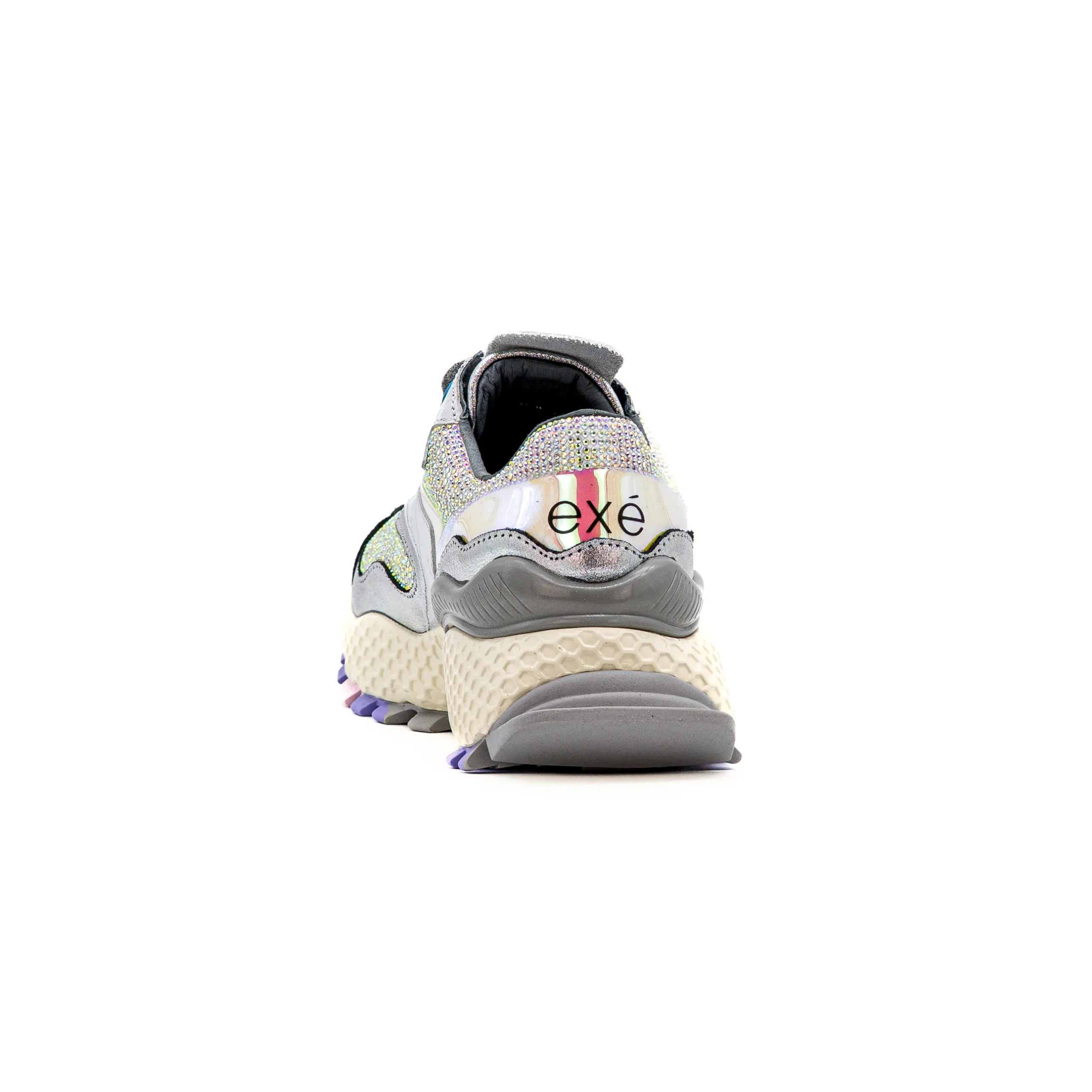 Esta sapatilha combina diferentes texturas, detalhes brilhantes e apontamentos de cor, criando um modelo único e cheio de personalidade.