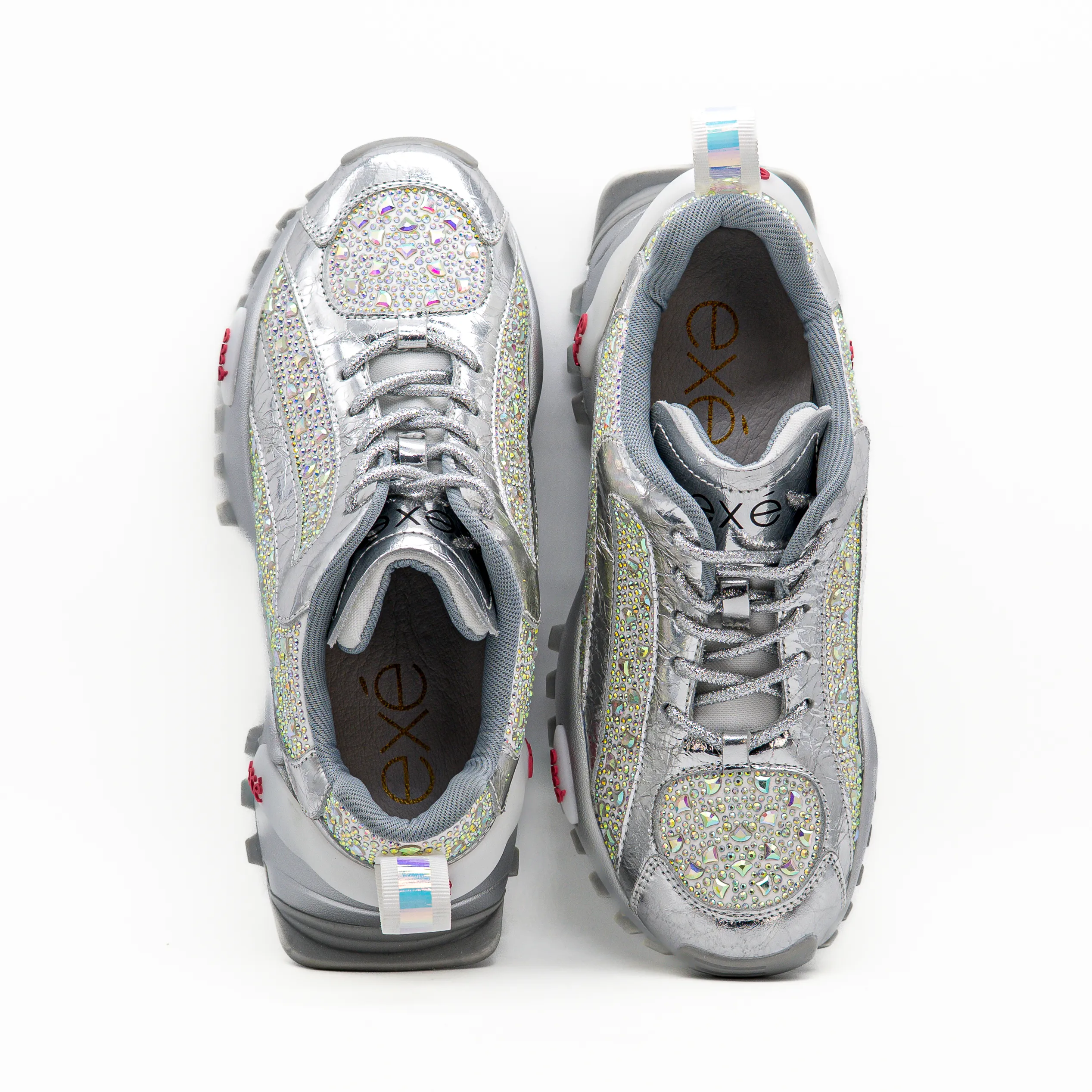 Estas sapatilhas prateadas combinam um visual urbano e sofisticado com um toque moderno que destaca qualquer look .