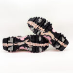 Ténis de mulher em tecido, com sola em borracha, com detalhes texturados em pele, e pormenores plastificados, nas laterais.