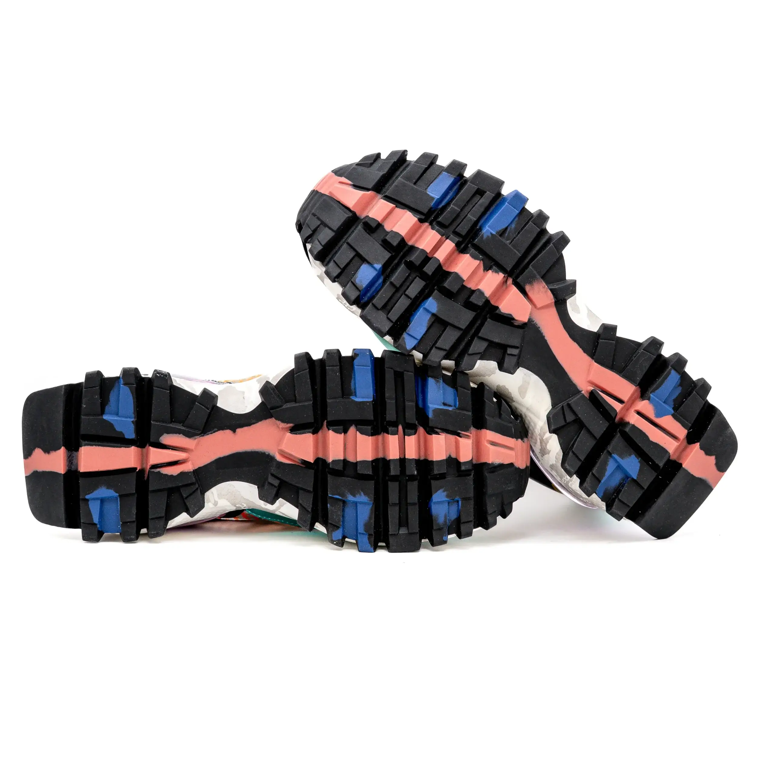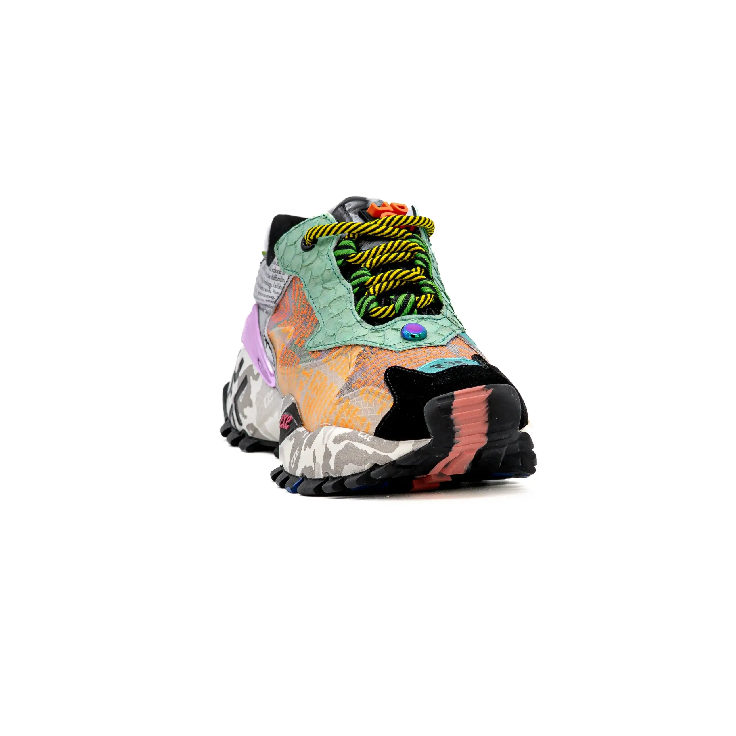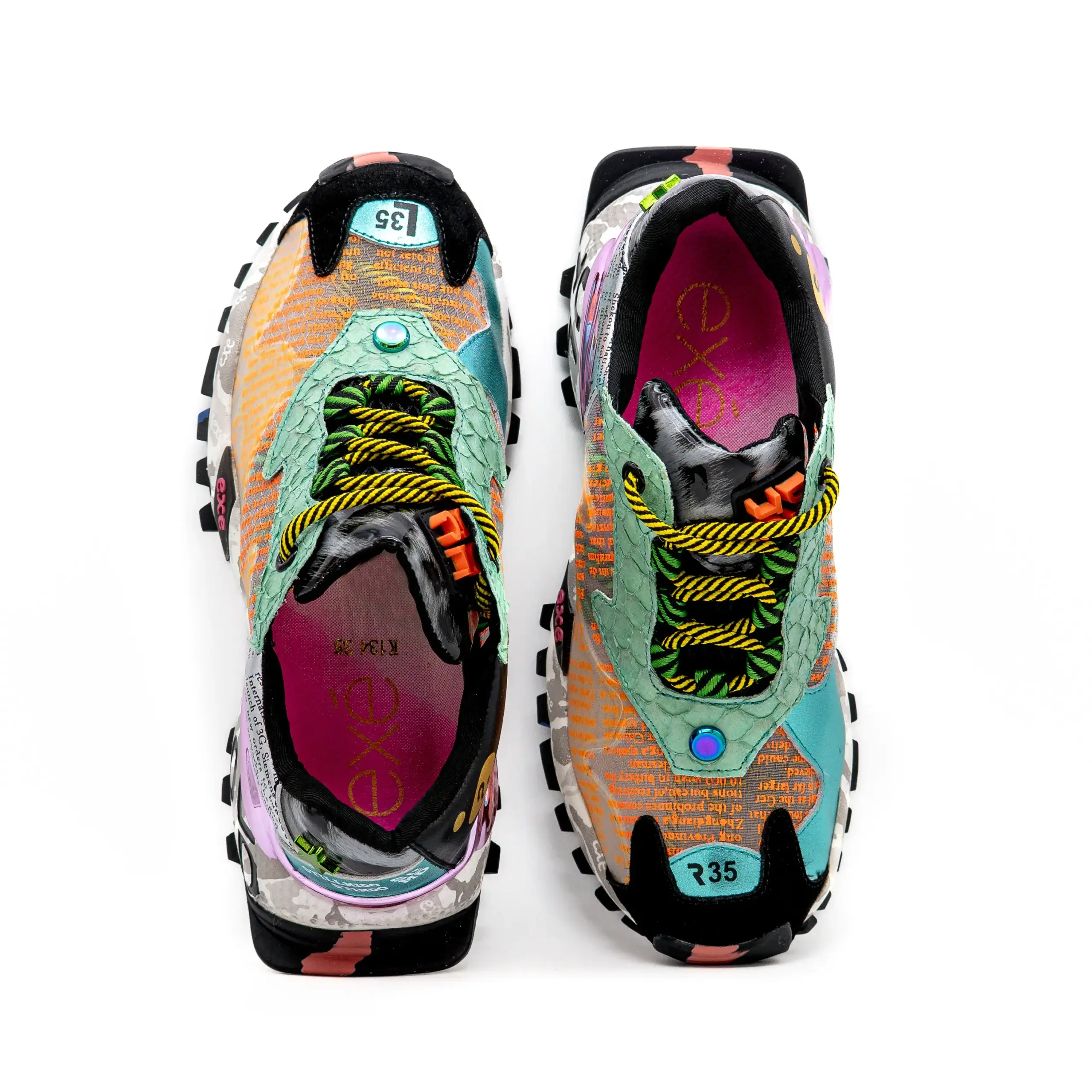 Este modelo da Exé, leve e super confortável é complementado com uma combinação irreverente de tons, do verde ao laranja.