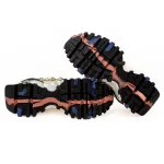 No interior, tem a palmilha em pele e na zona do calcanhar, um reforço rígido, que confere estabilidade ao caminhar.