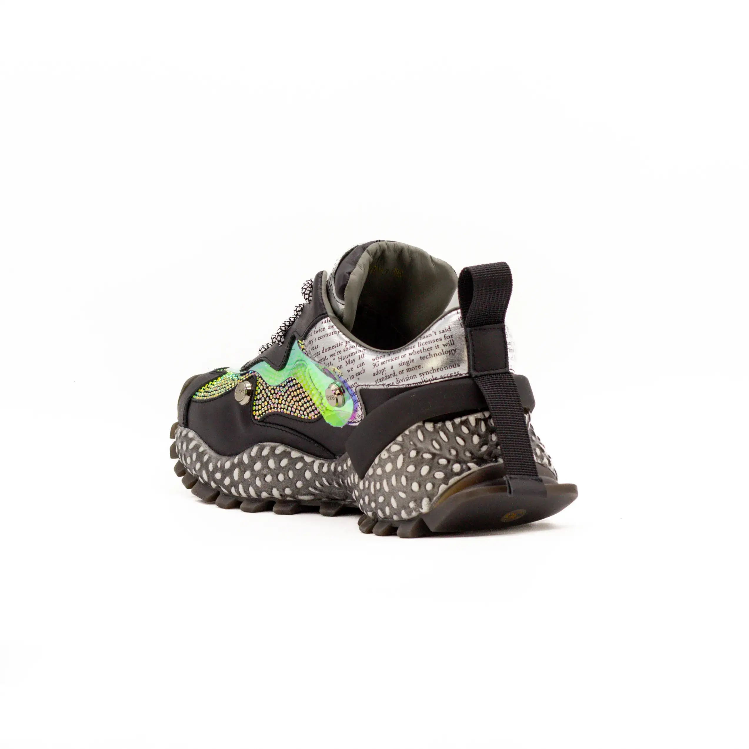 - Pormenores com inscrições, na zona do calcanhar, em tom prateado de base.