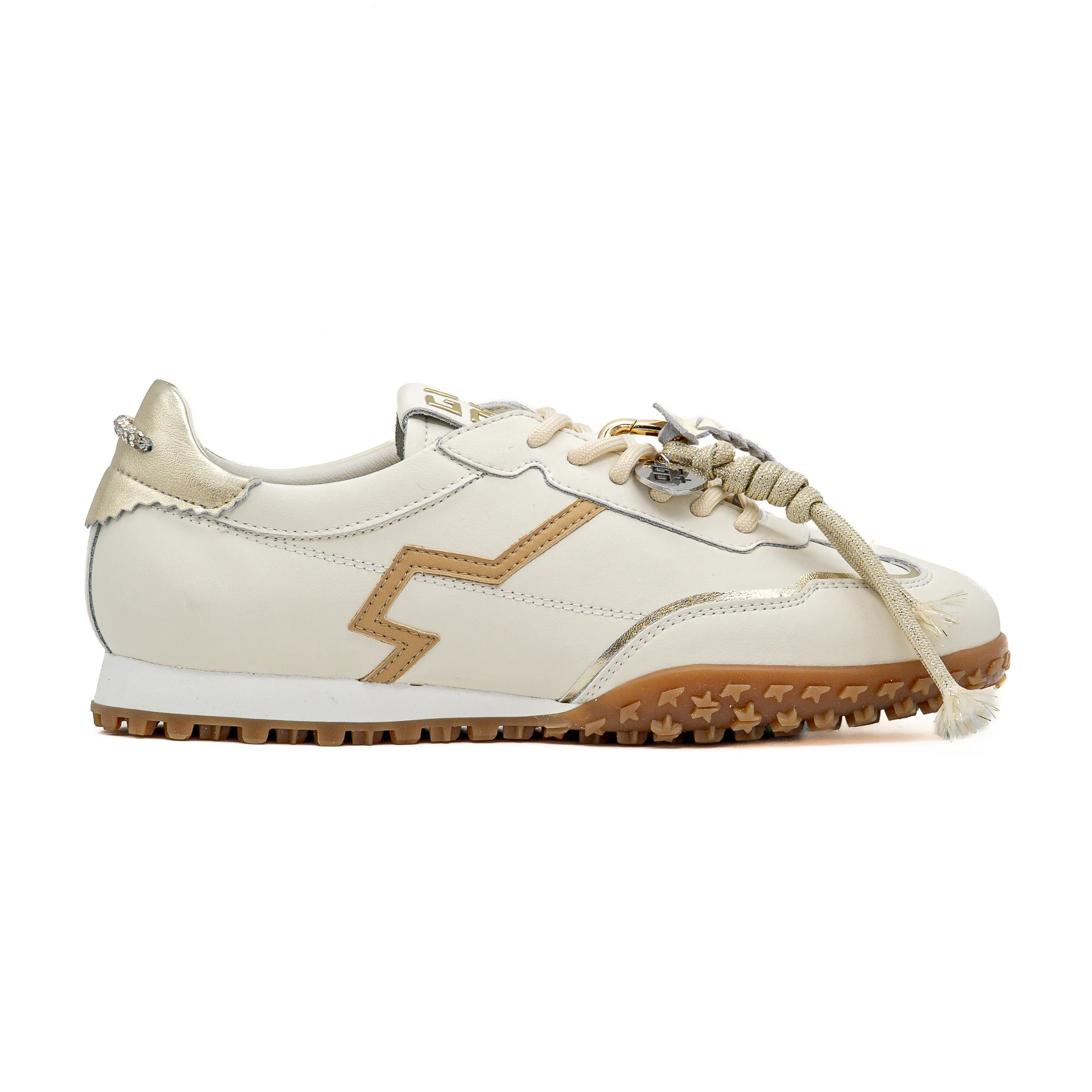 Os detalhes cuidadosamente pensados, como o apontamento em prateado no calcanhar e os pendentes decorativos removíveis em dourado, reforçam o caráter exclusivo do modelo e permitem adaptar o estilo conforme a ocasião.