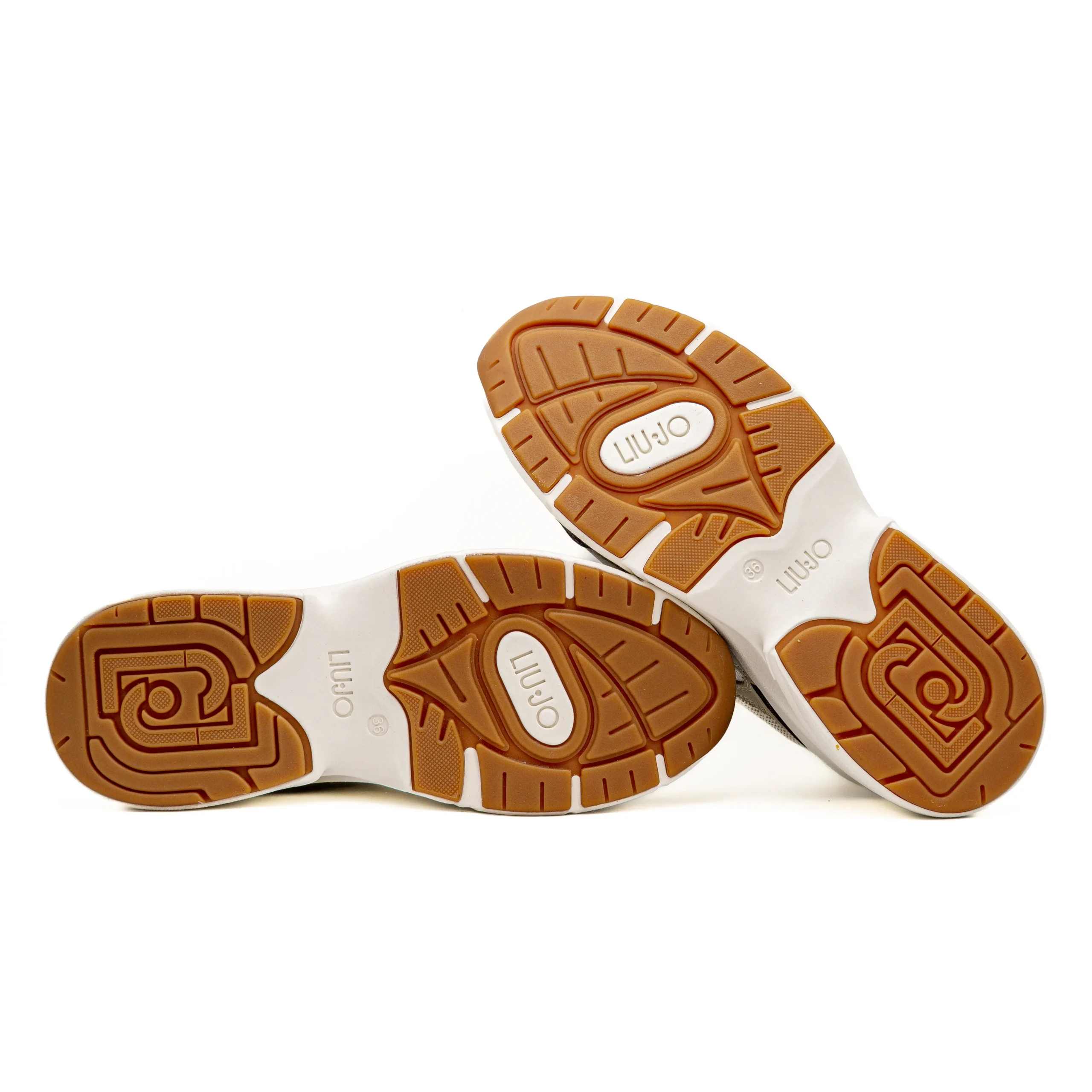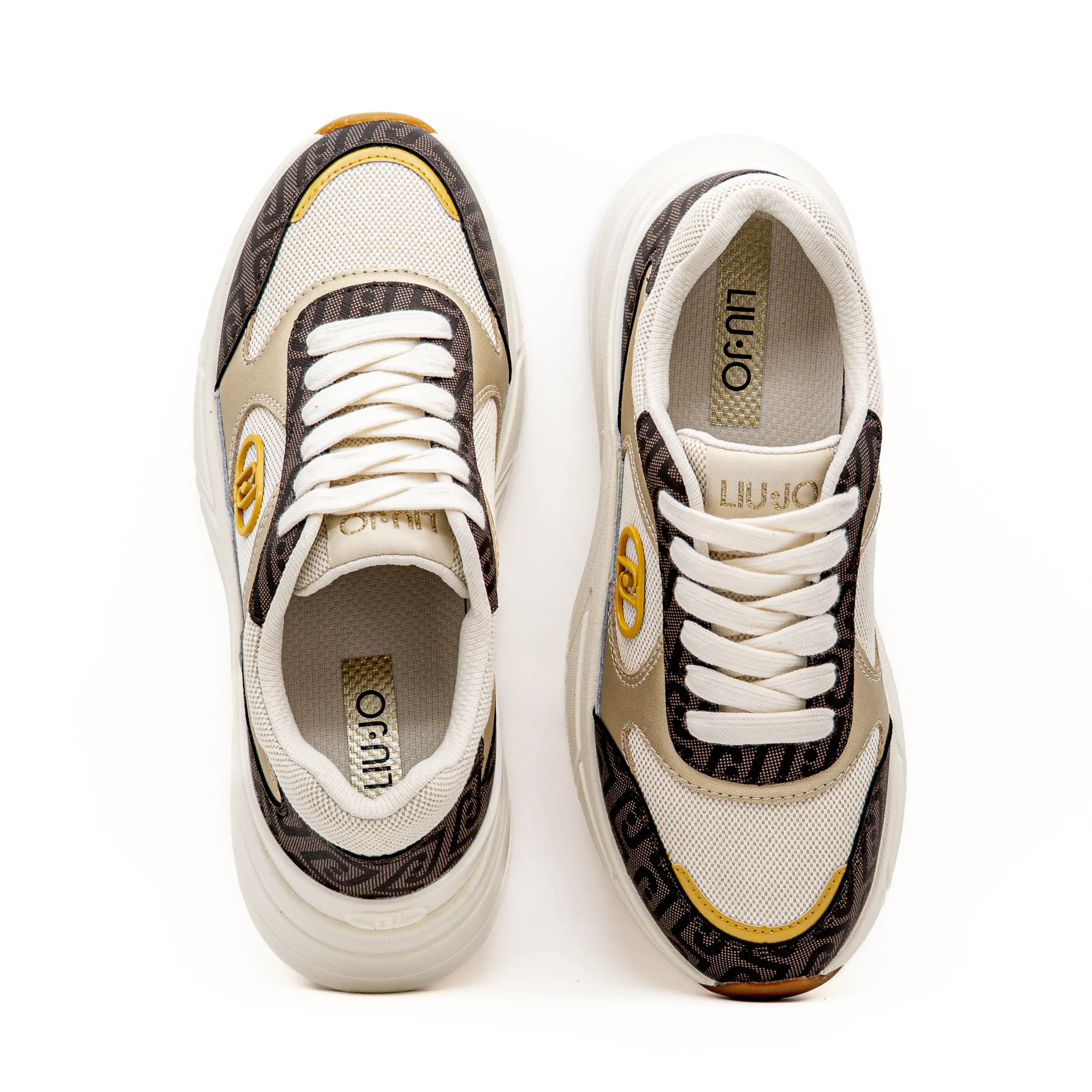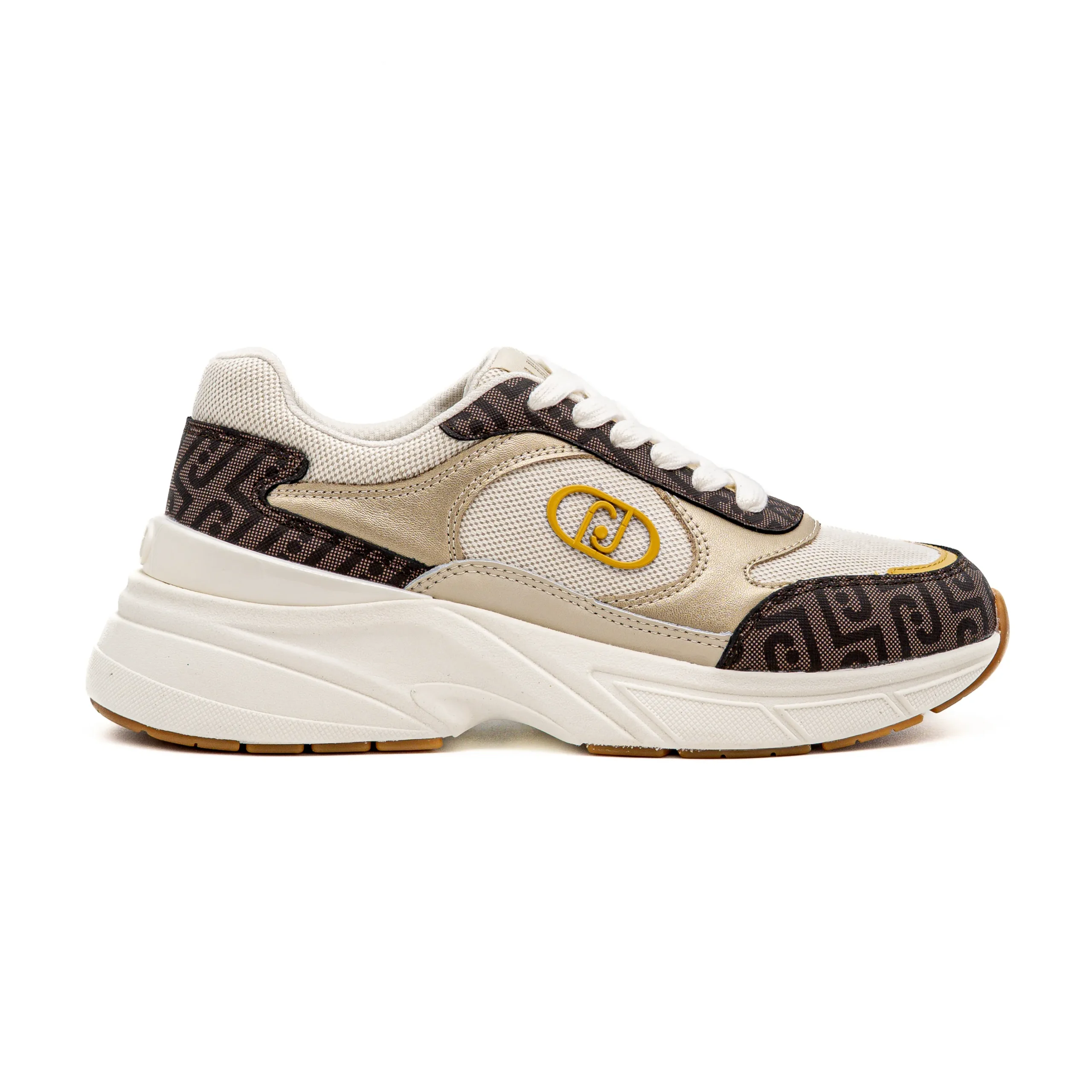 As sapatilhas LJ01 01 da Liu Jo em tons de bege e castanho destacam-se pela harmonia cromática e estética sofisticada.