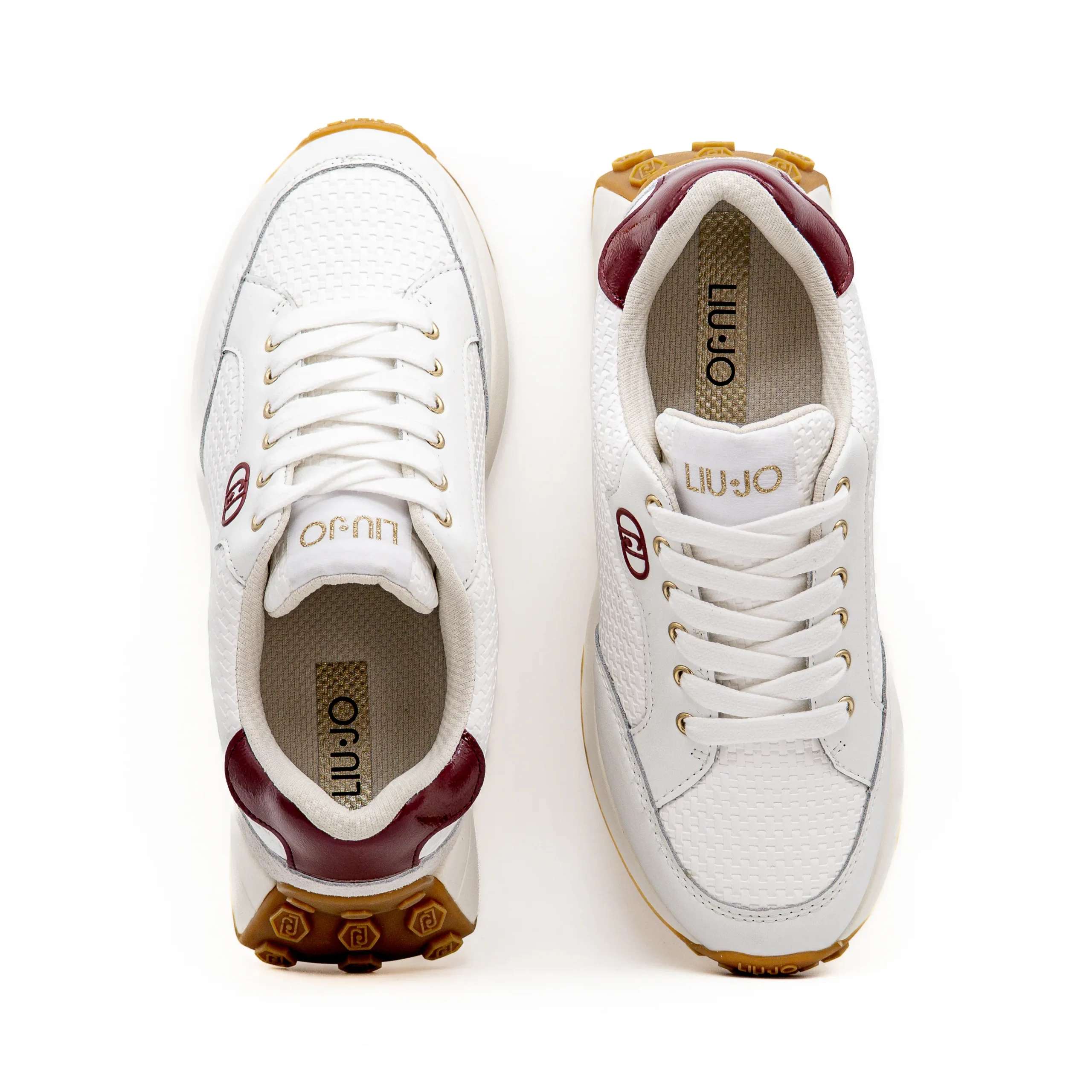 As Lolo 20 da Liu Jo em branco com detalhes em bordeaux combinam um toque feminino e frescura num design atual e expressivo.