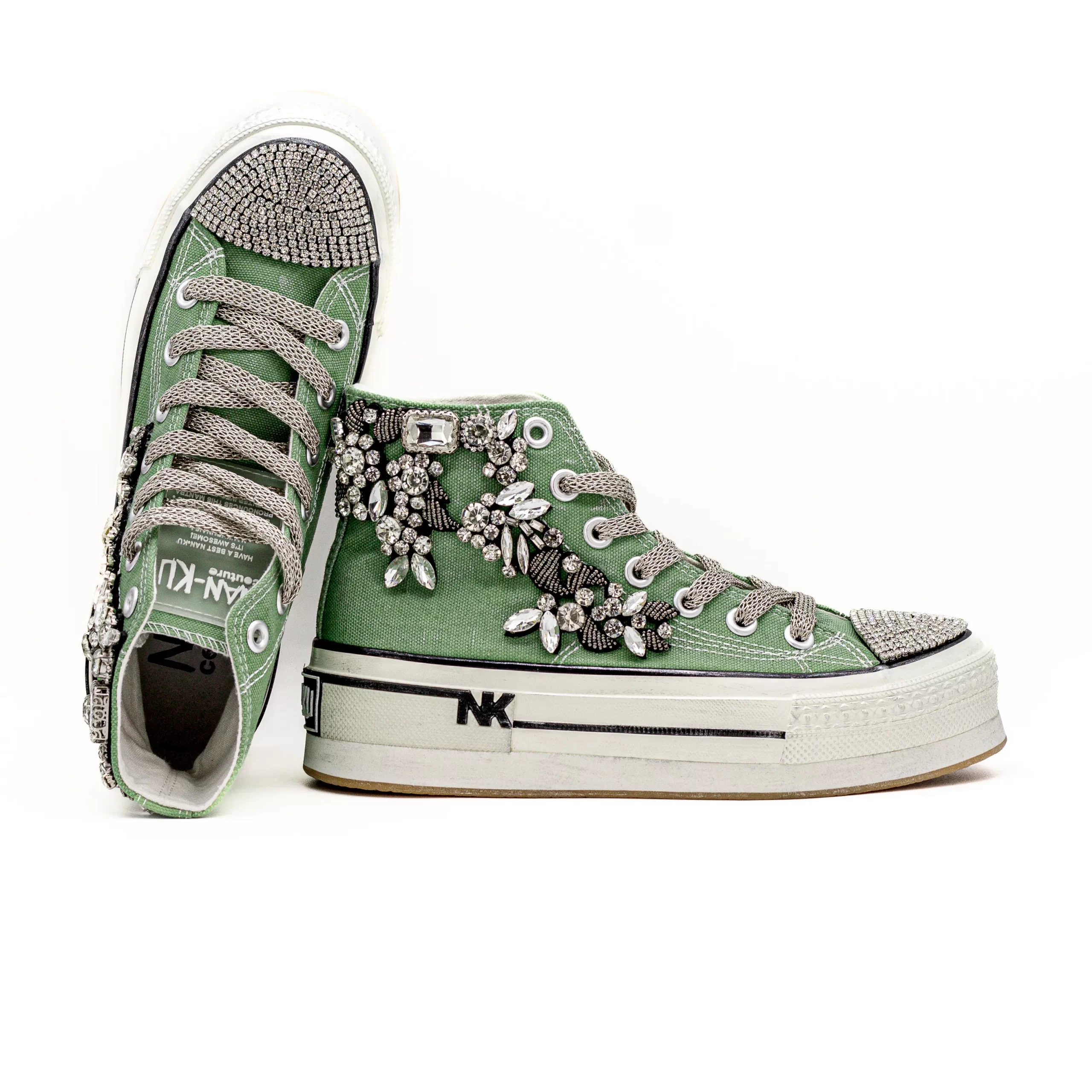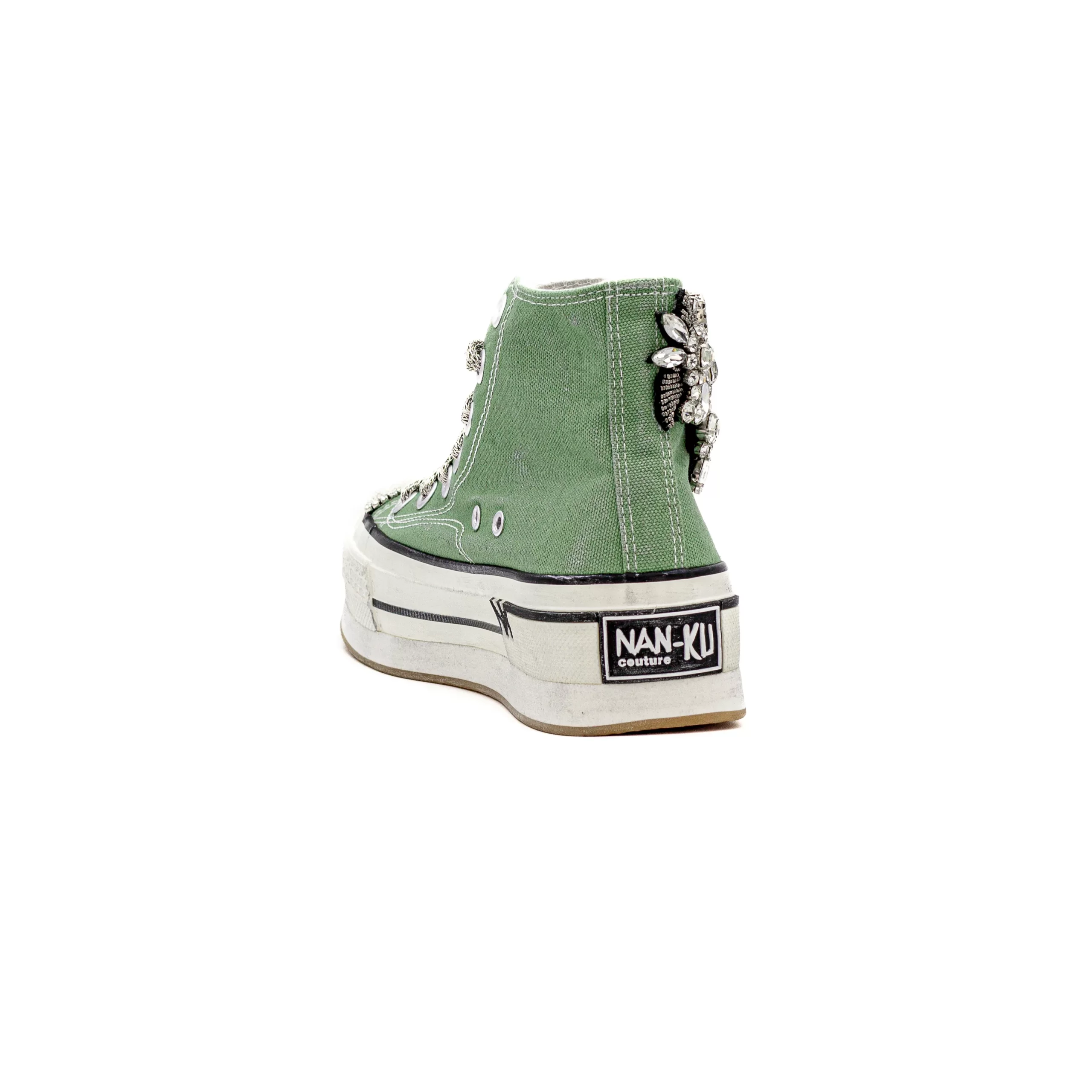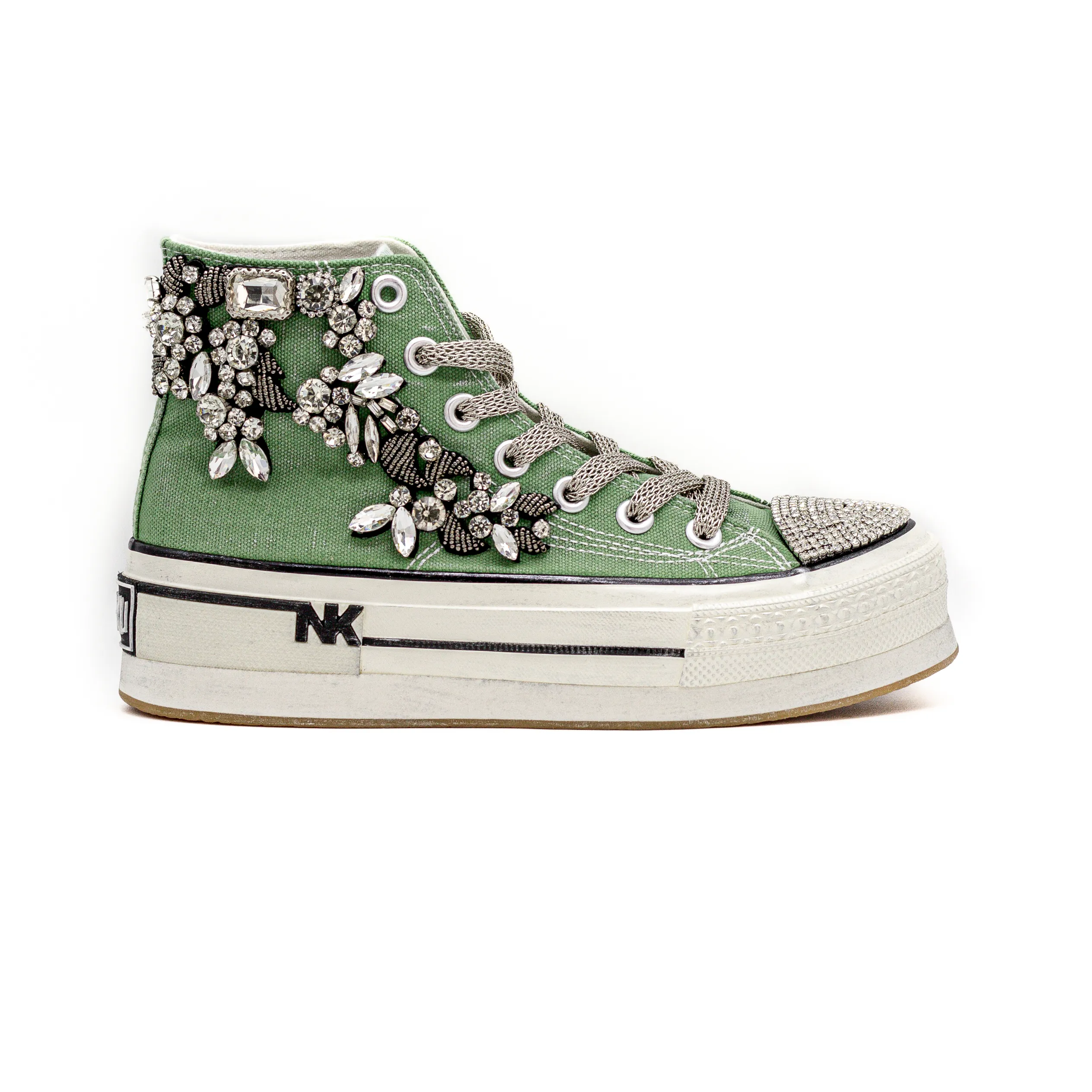 Juntar a isto uma base em tom verde, adornada de aplicações em formato floral, parece impossível, mas a verdade é que estas sapatilhas são a aliança perfeita de todas estas vantagens!