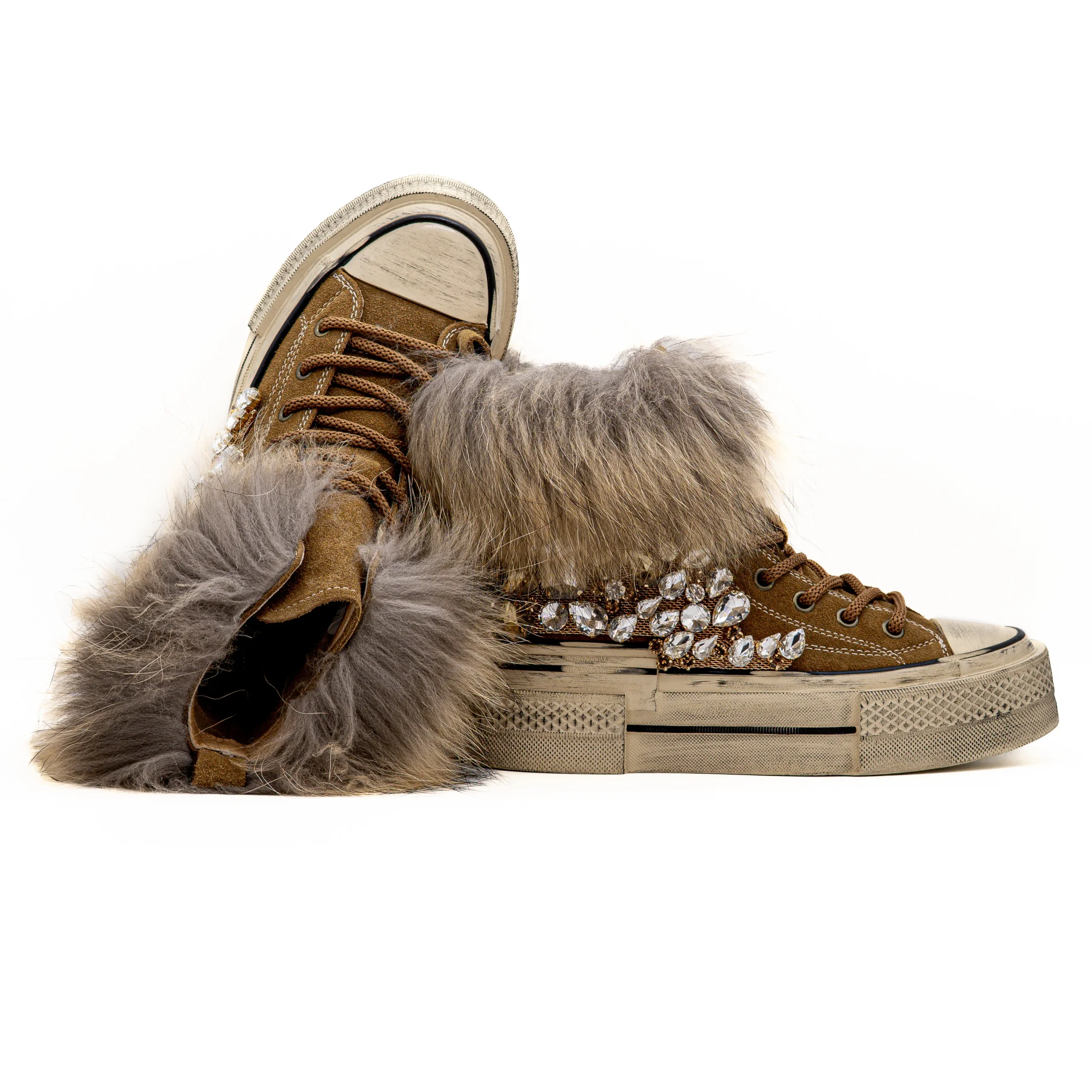 As Nan-Ku EFD-04C são complementadas com um pelo longo arrojado na parte externa do cano, detalhes com aplicações e brilhos, para se diferenciar e ser o teu aconchego nesta estação