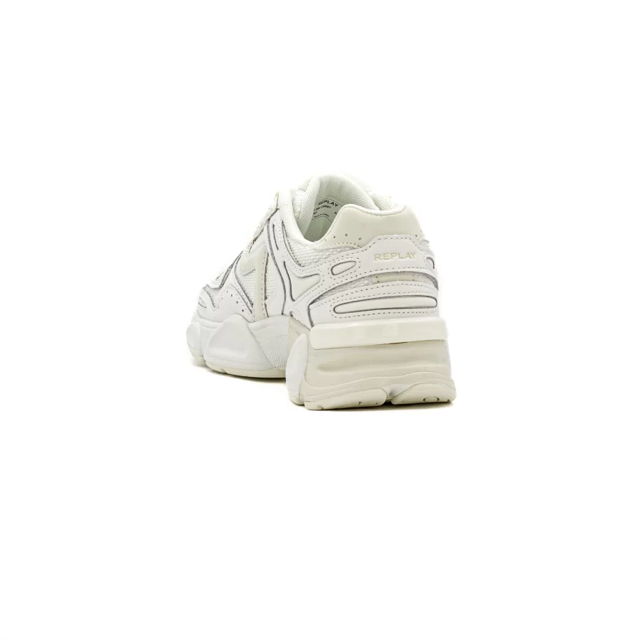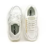 Este modelo, da Replay, tem, na zona do calcanhar, um reforço plastificado, rígido, que confere estabilidade ao pé.