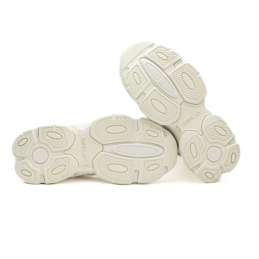 A base da sola, em borracha é texturada , dessa forma cria , um contacto mais seguro com o solo. Prolonga-se até à biqueira e remata de forma saliente no calcanhar da sapatilha.