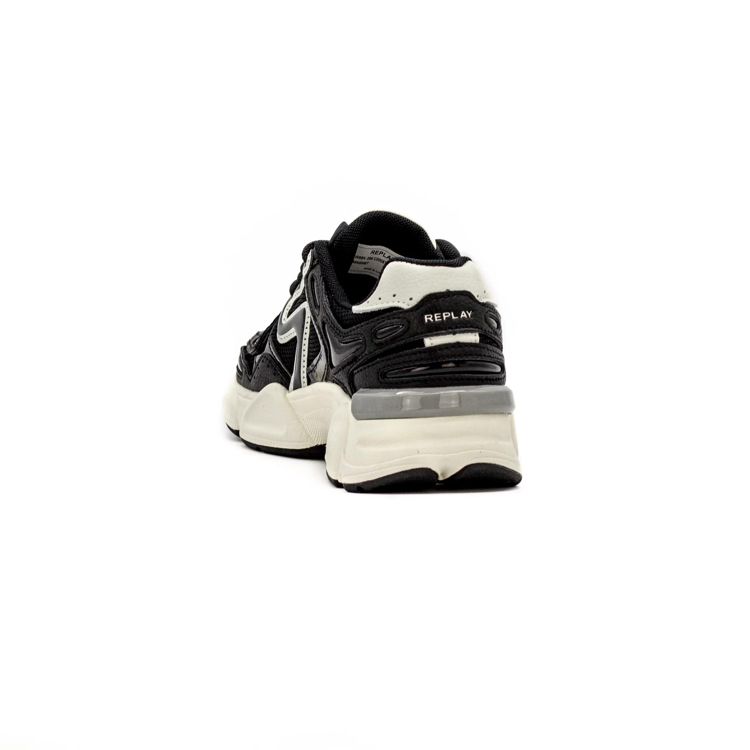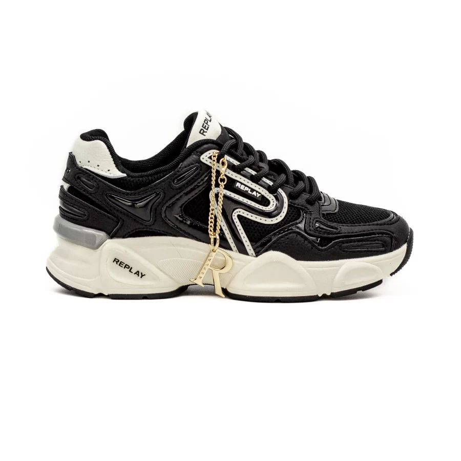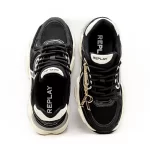 Este modelo, da Replay, tem, na zona do calcanhar, um reforço plastificado, rígido, que confere estabilidade ao pé.