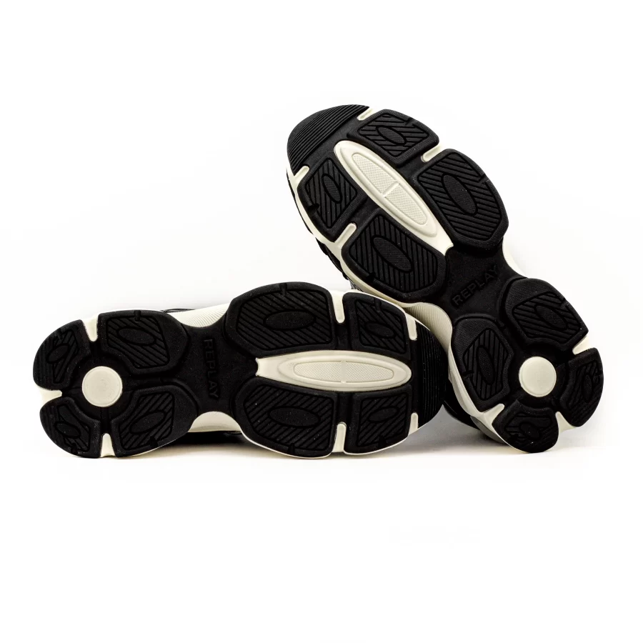 A base da sola, em borracha é texturada , dessa forma cria , um contacto mais seguro com o solo. Prolonga-se até à biqueira e remata de forma saliente no calcanhar da sapatilha.
