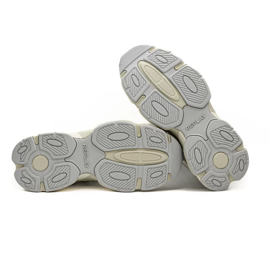 A base da sola, em borracha é texturada , dessa forma cria , um contacto mais seguro com o solo. Prolonga-se até à biqueira e remata de forma saliente no calcanhar da sapatilha.