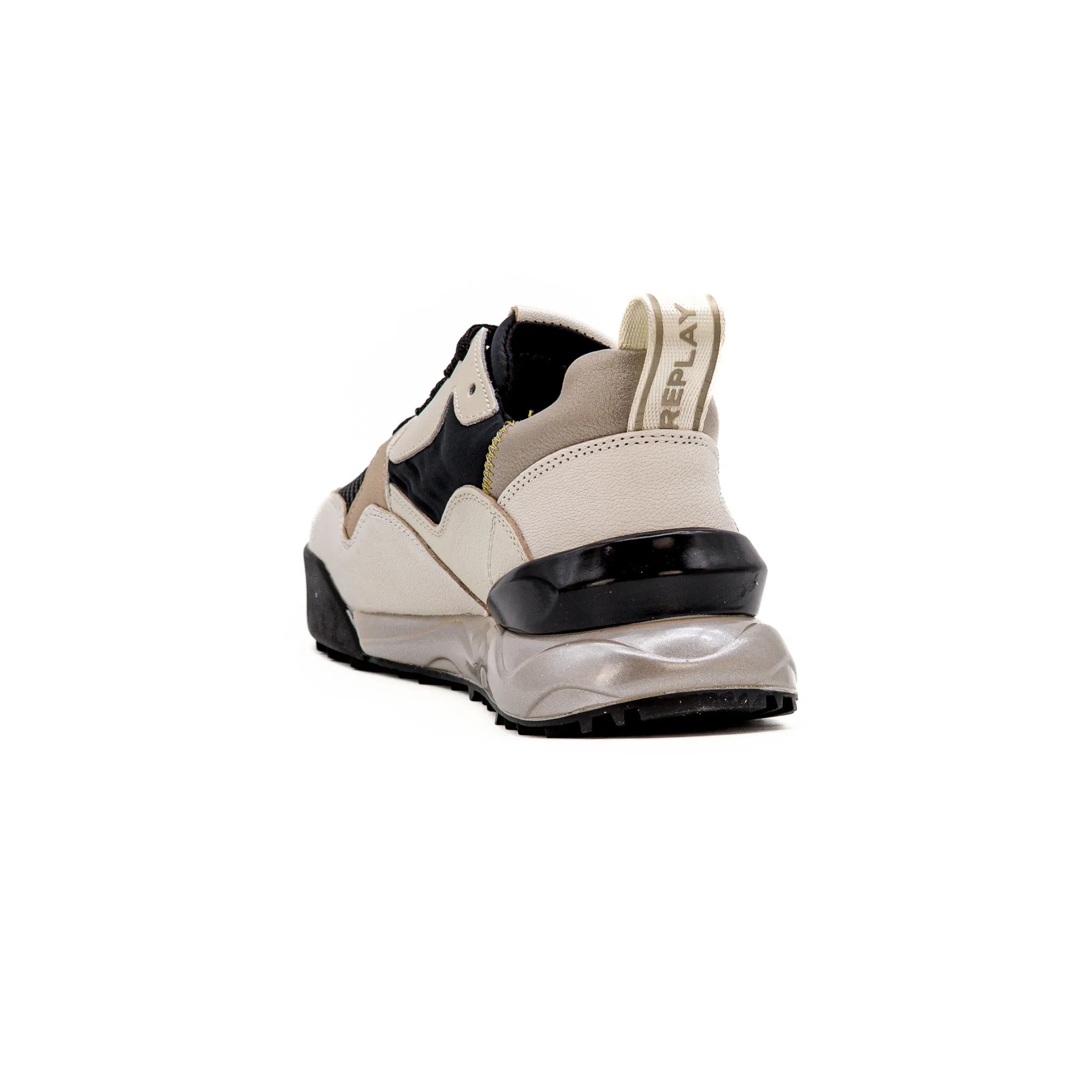 Este modelo, da Replay, tem, na zona do calcanhar, um reforço plastificado, rígido, que confere estabilidade ao pé.