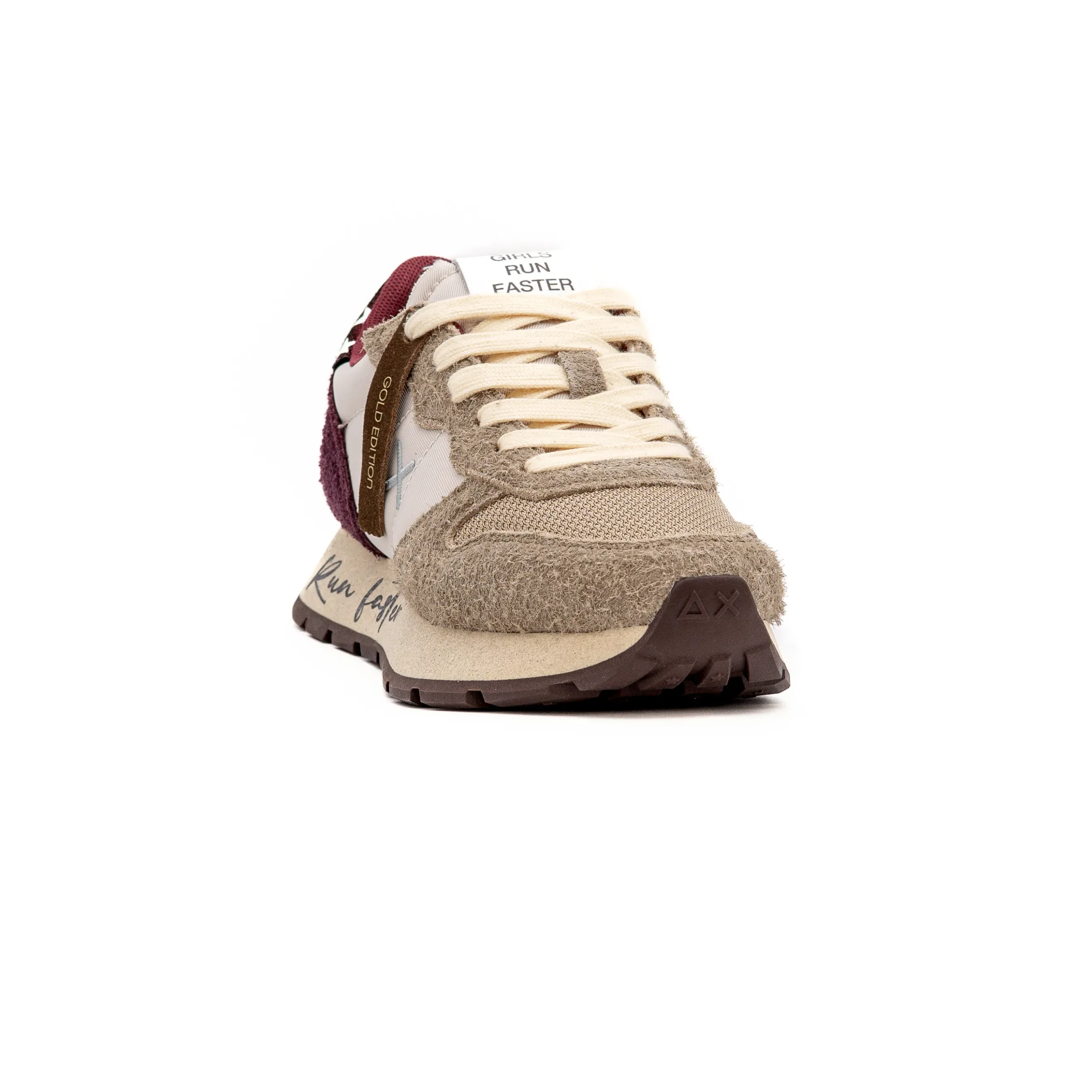A Frase Run Faster inscrita na sola torna o modelo único e com personalidade.