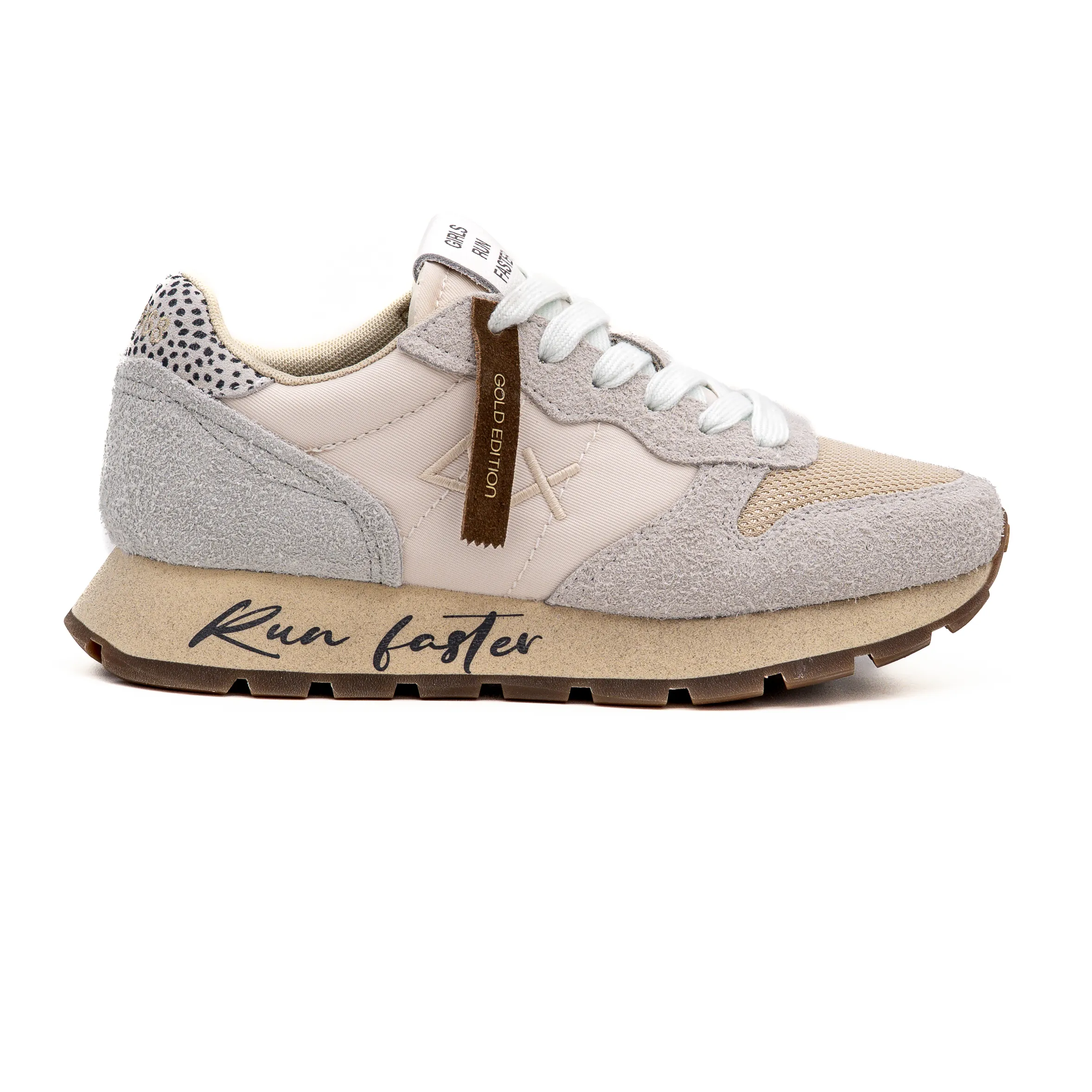 A Frase Run Faster inscrita na sola torna o modelo único e com personalidade.