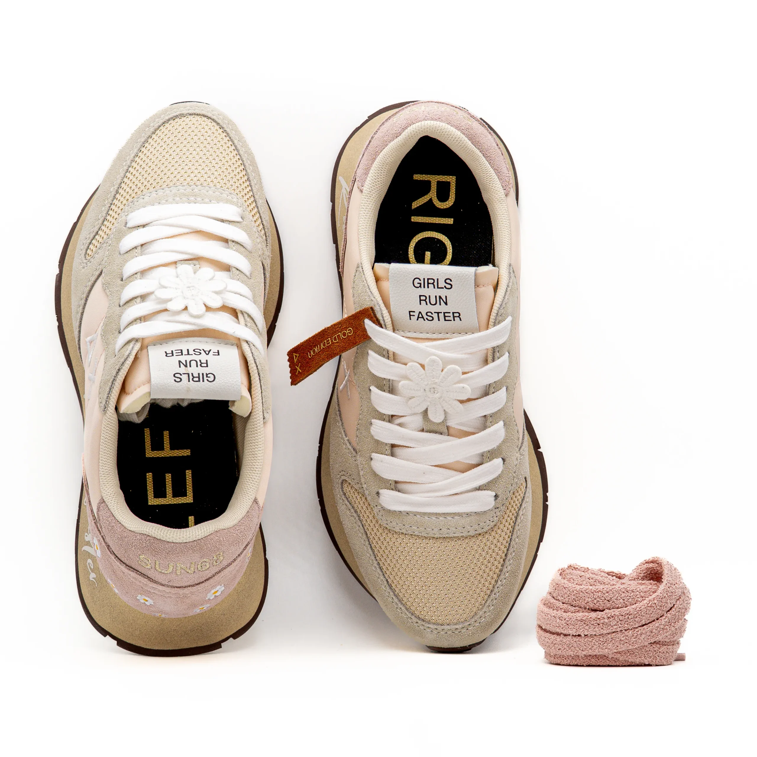 - Inscrição Run Faster na sola;