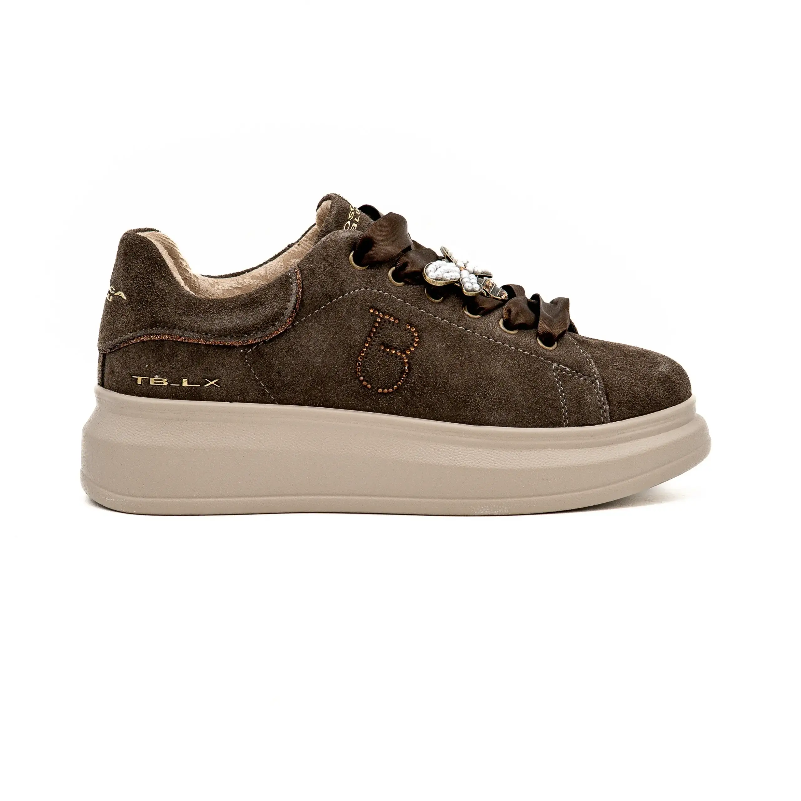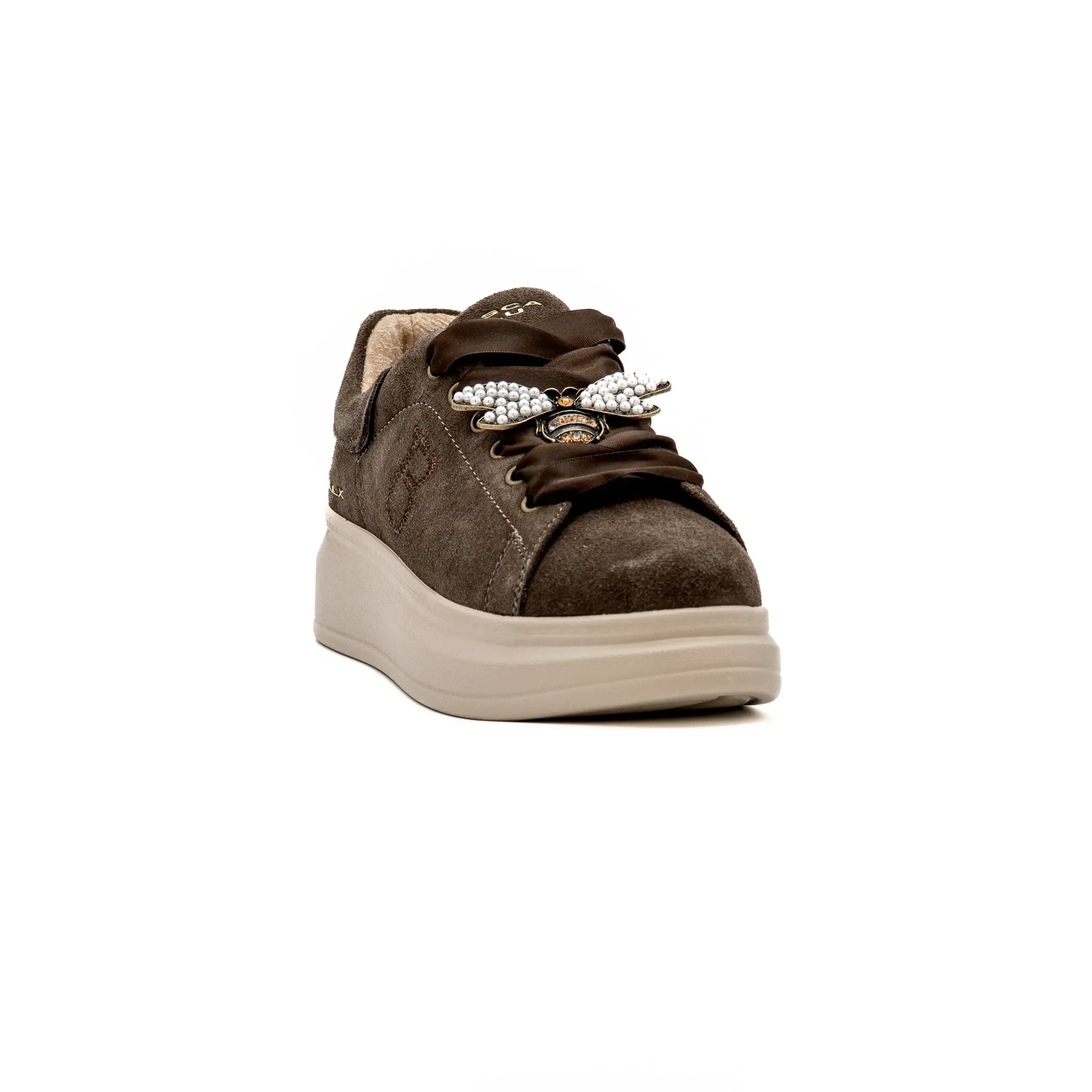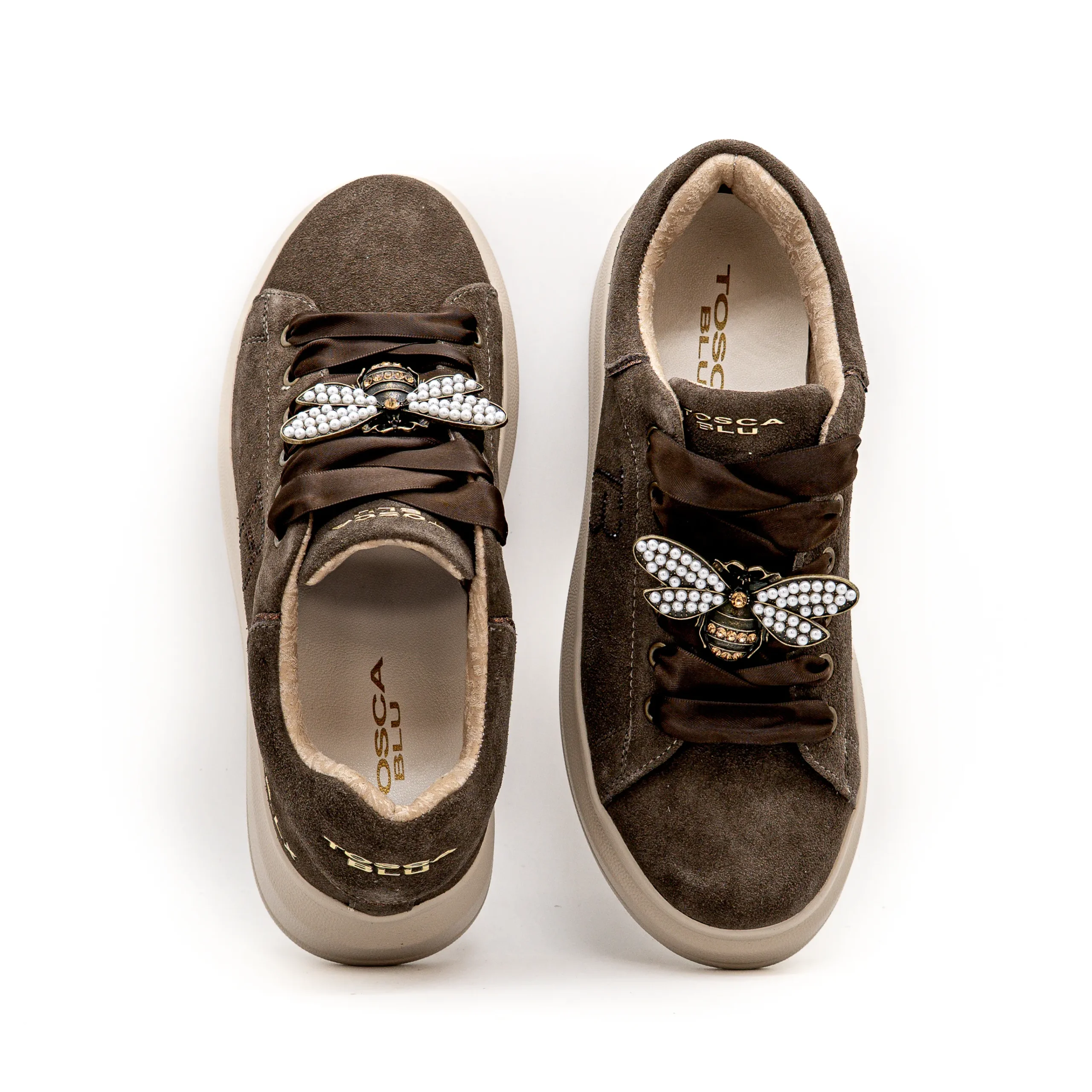 Os detalhes decorativos conferem máxima elegância a esta sapatilha.
