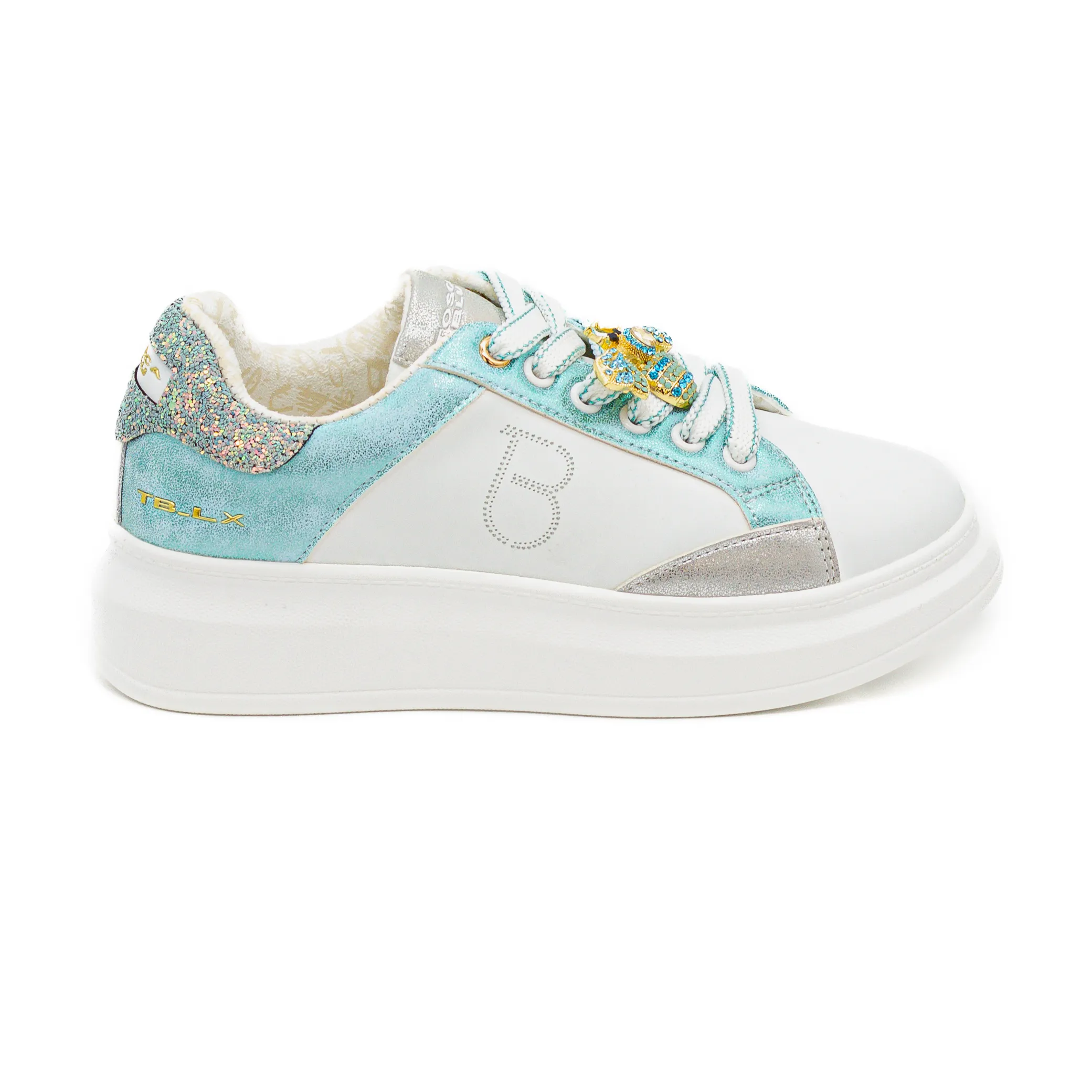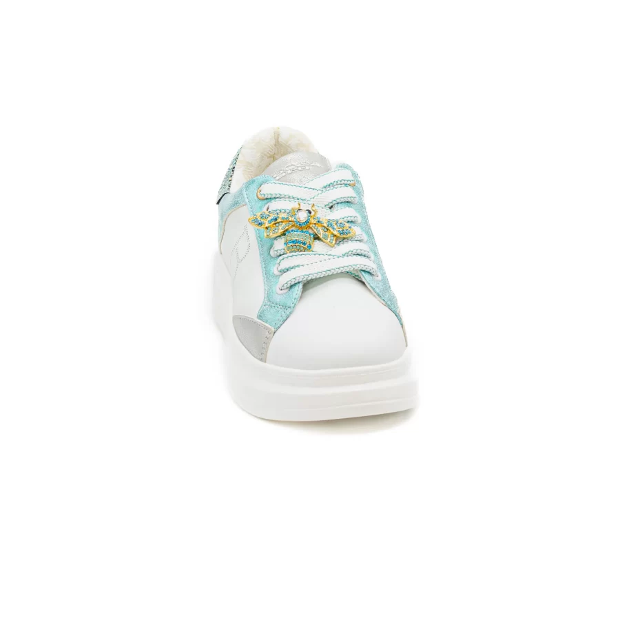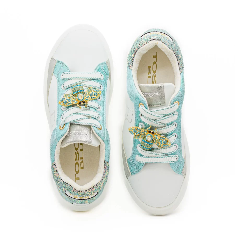 Umas sapatilhas contempladas com detalhes decorativos e brilhos.