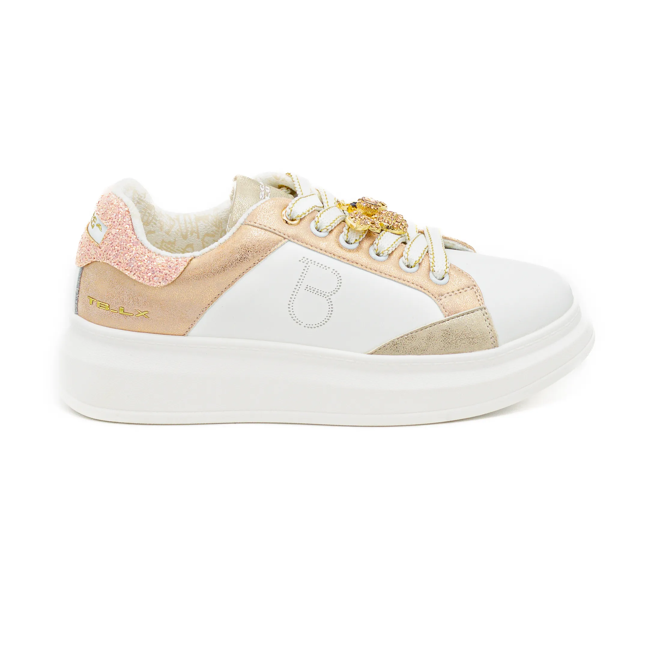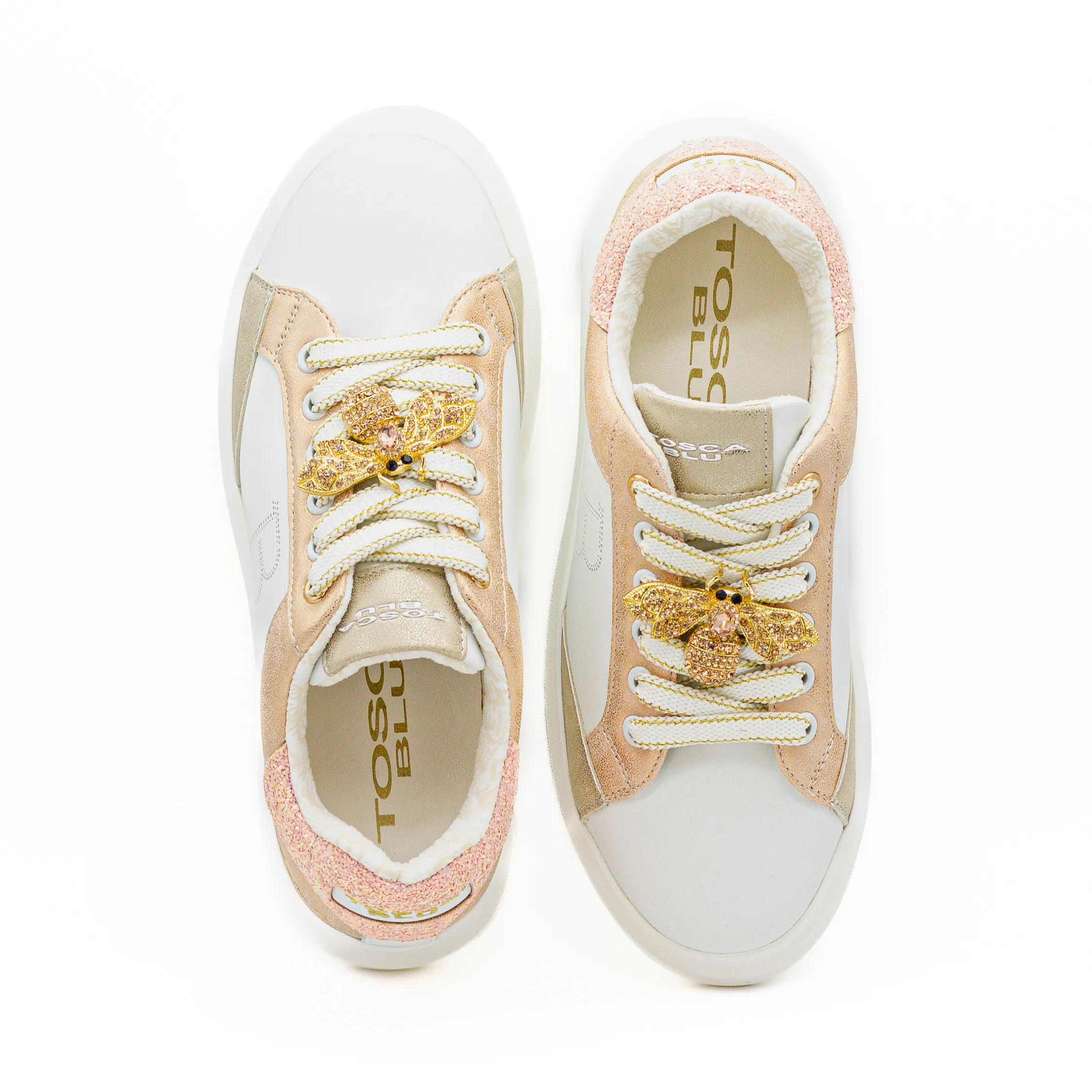 Umas sapatilhas contempladas com detalhes decorativos e brilhos.