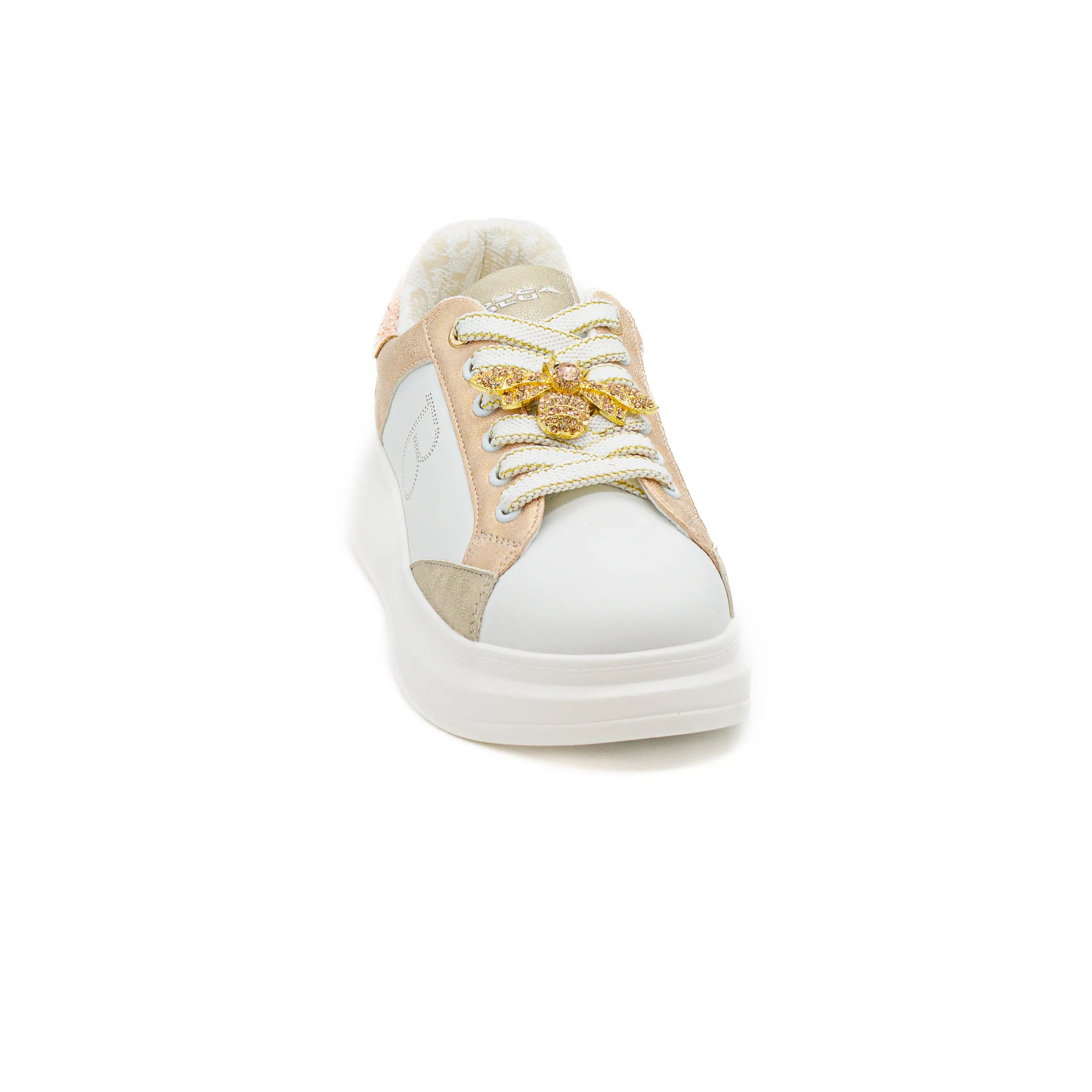 Os detalhes decorativos conferem máxima elegância a esta sapatilha.