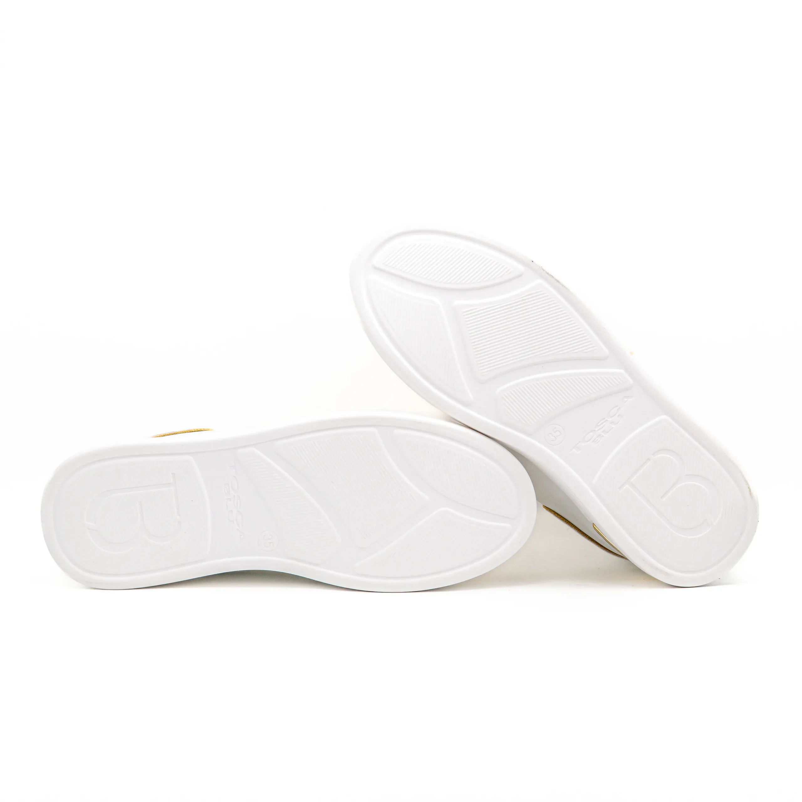 Estas sapatilhas combinam um design clássico com aplicações decorativas que elevam o visual e acrescentam personalidade ao modelo.