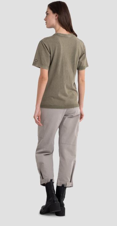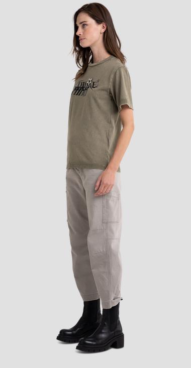 T-shirt Replay Whith Print and Jewel Appliques